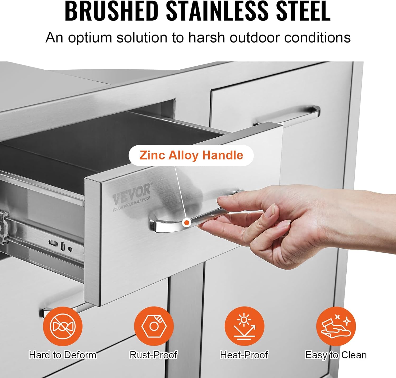 Superior Stainless Steel: This outdoor BBQ drawer is made of stainless steel. The brushed finish is designed to withstand years of exposure while resisting rust scratches and scuffs. High temperatures will not easily deform it. Moreover oil stains can easily be cleaned with a cloth.
