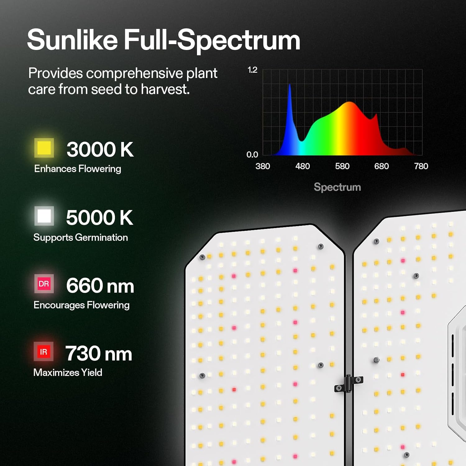 Uniform Light and Air: The hollow light design allows air to circulate more efficiently; Special air-guiding designs incorporate angles that direct wind uniformly across the plant canopy; Foldable design with two angle-adjustable wings offers versatile light distribution for enhanced flexibility