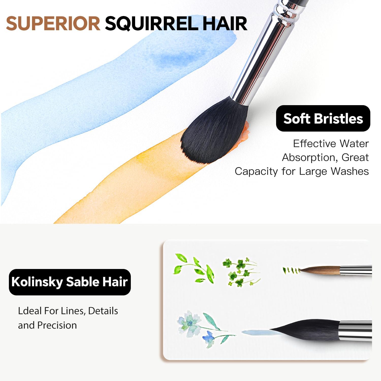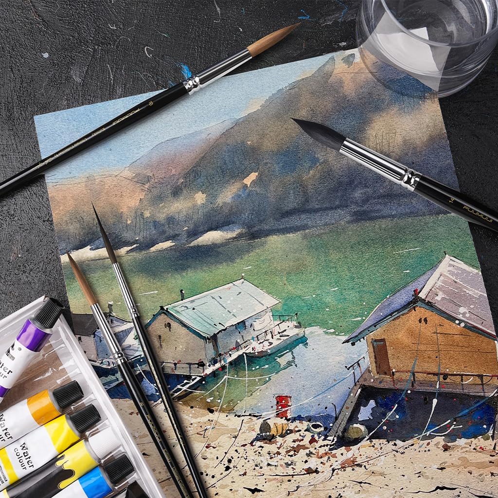 #10 Pure Kolinsky Round Brush This premium round brush crafted from the highest-grade Kolinsky Sable provides perfect fluidity balance and responsiveness making it an essential tool for expressive watercolor techniques.