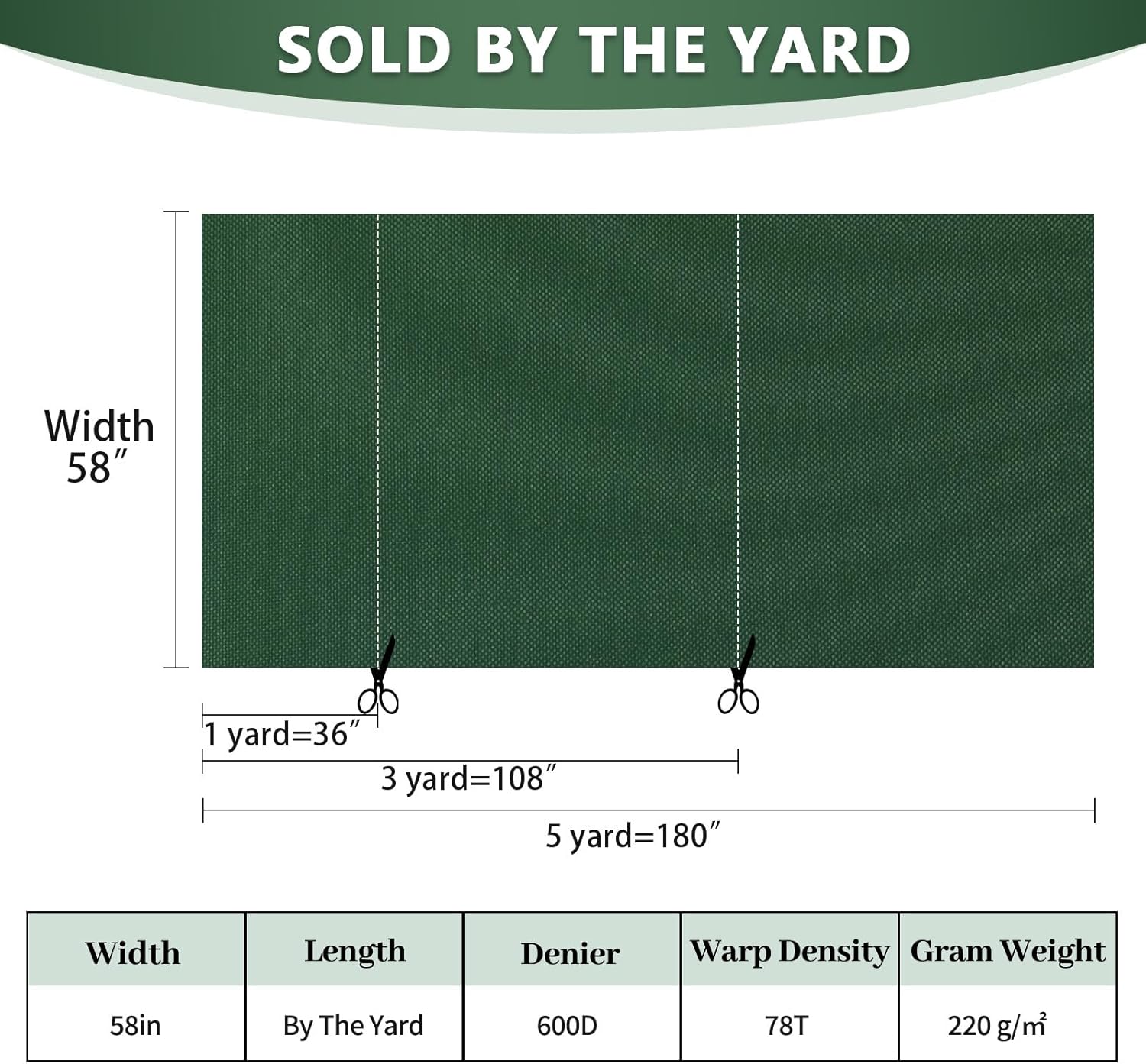 • Waterproof Canvas Fabric by The Yard 58inch 600D Upholstery Material Polyester Fabric Outdoor Water Resistant Fabric for Sewing Chair Patio Cushion Purse Bag Interior 15 Yard Green