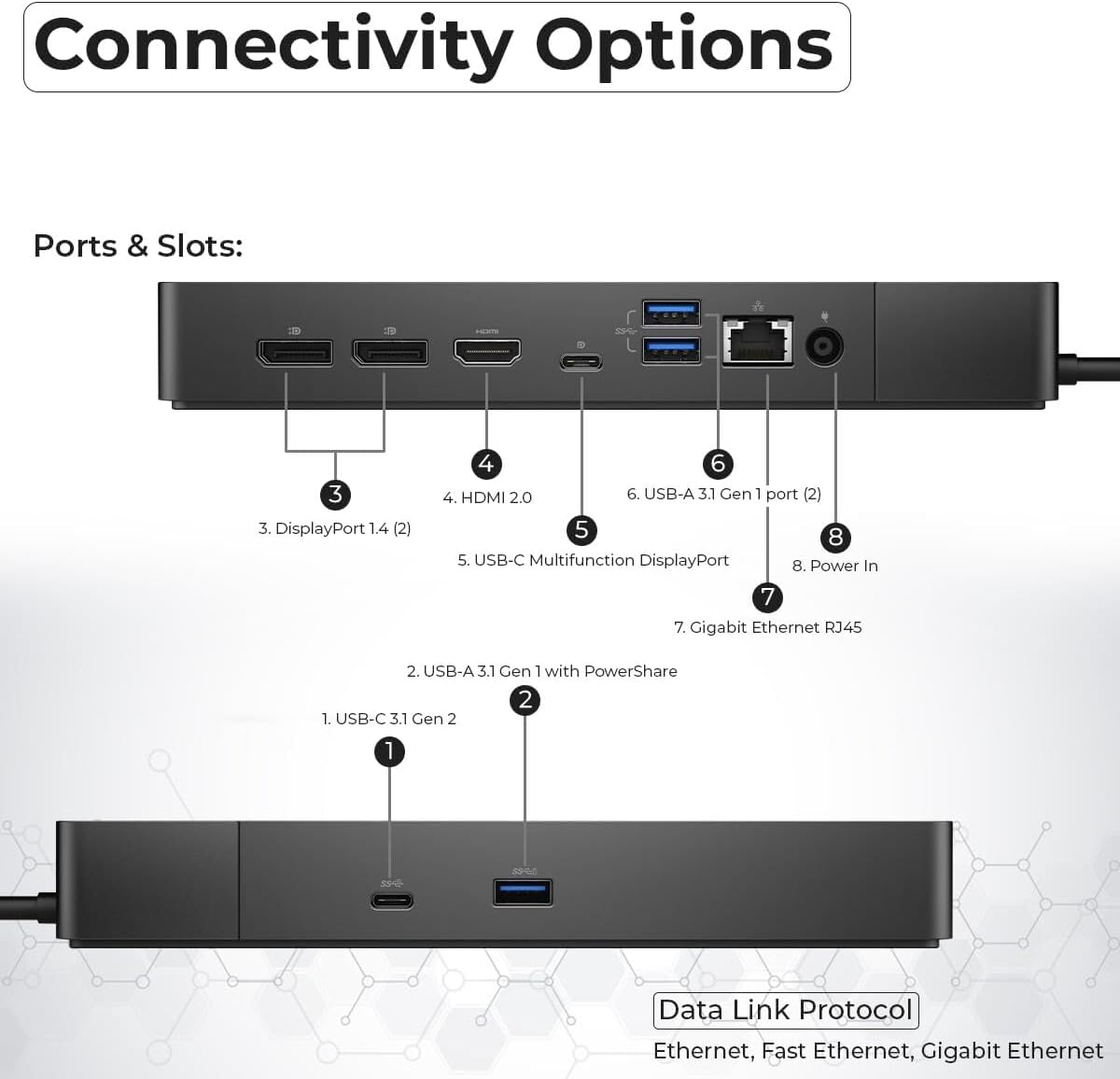 Ultimate connectivity: Dual USB-C connectivity makes it easier than ever to deliver power data audio and video as well as connect to system peripherals no matter what system you use.