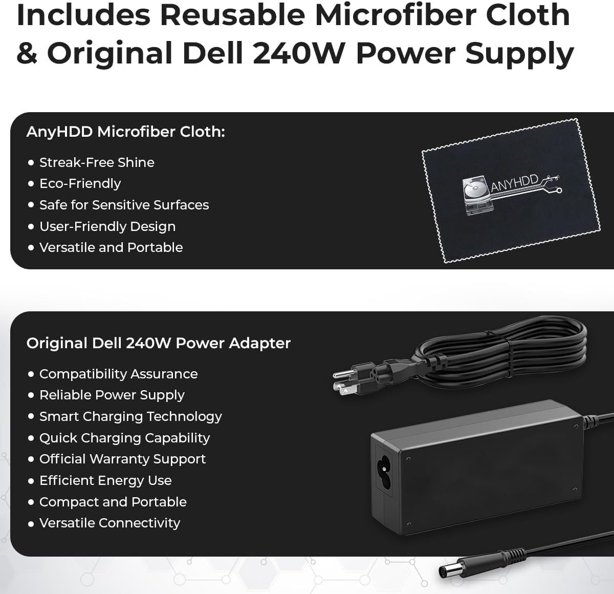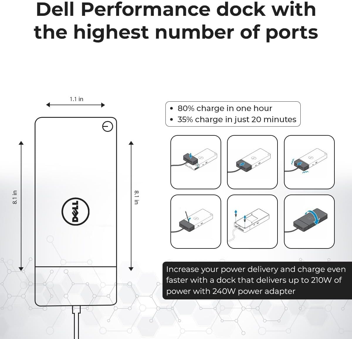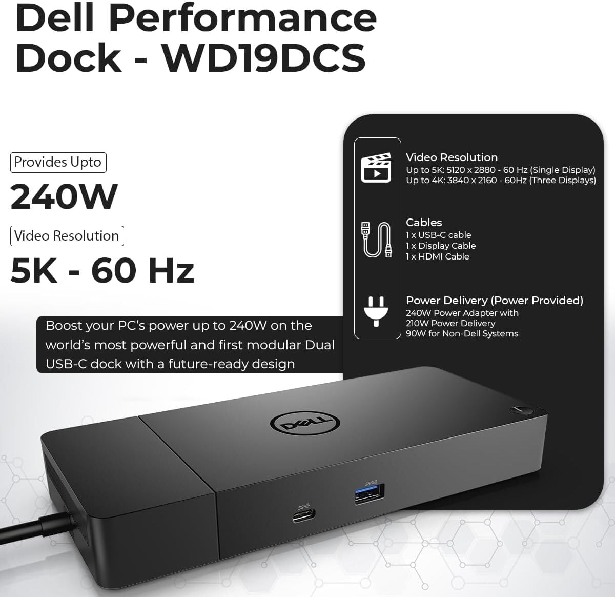 Power Adapter 240 Watt AC with up to 210 Watts power delivery to systems. Up to 90 Watts power delivery to systems
