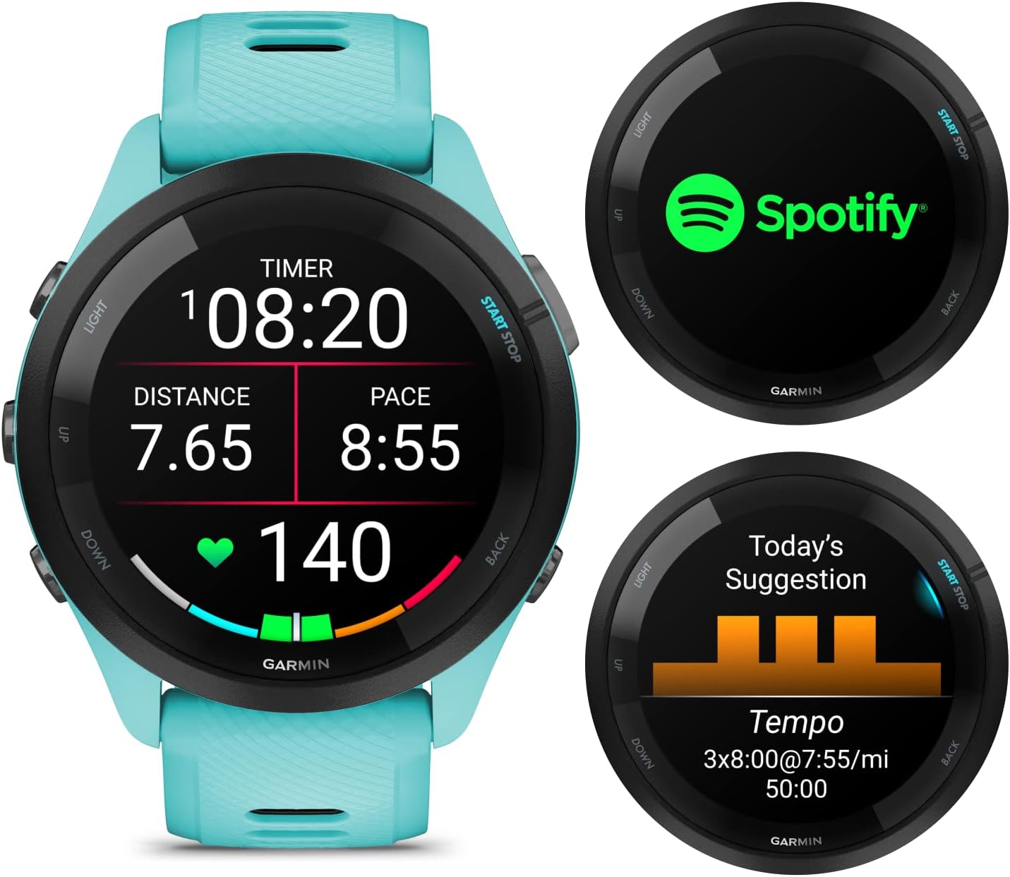 PLAN YOUR STRATEGY: get your morning report with an overview of your sleep recovery and training outlook alongside HRV status training readiness and weather (data presented is intended to be a close estimation of metrics tracked) and plan race strategy with personalized daily suggested workouts based on the race and course that you input into the Garmin Connect app and then view the race widget on your watch; daily suggested workouts adapt after every run to match performance and recovery