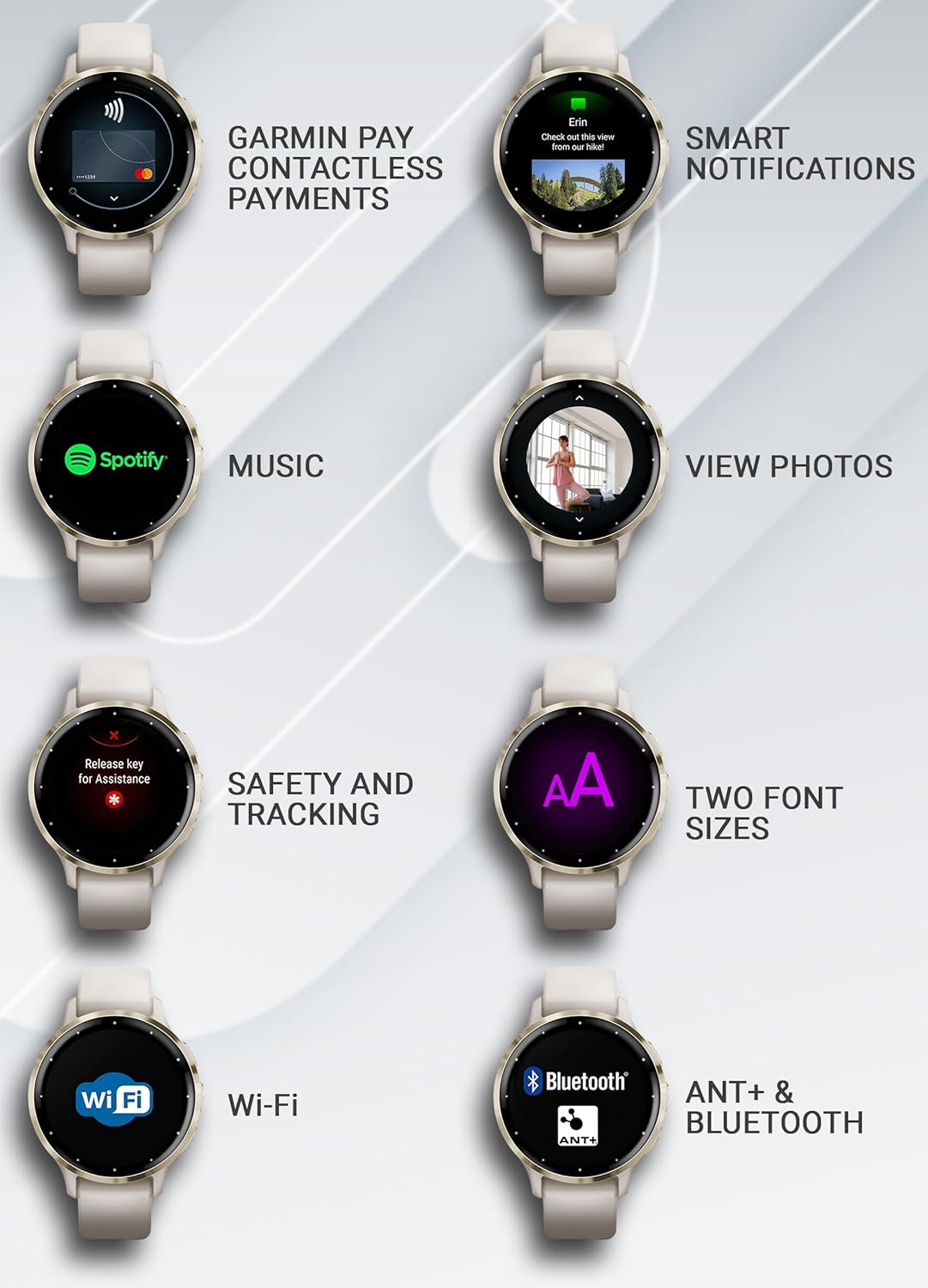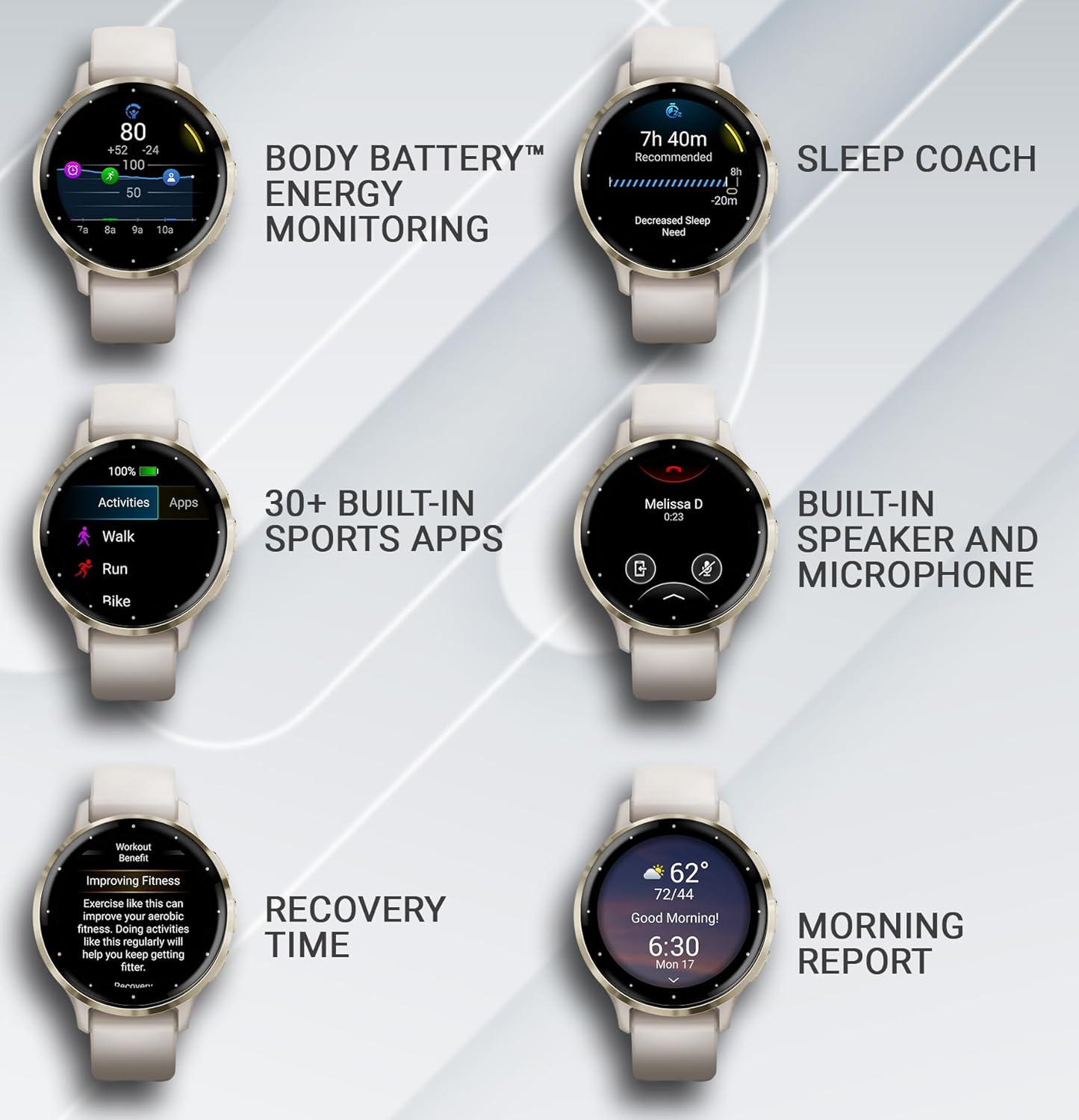 HEALTH AND WELLNESS: Know your body better with extensive monitoring features including wrist-based heart rate morning report fitness age stress tracking menstrual cycle and pregnancy tracking meditation and more