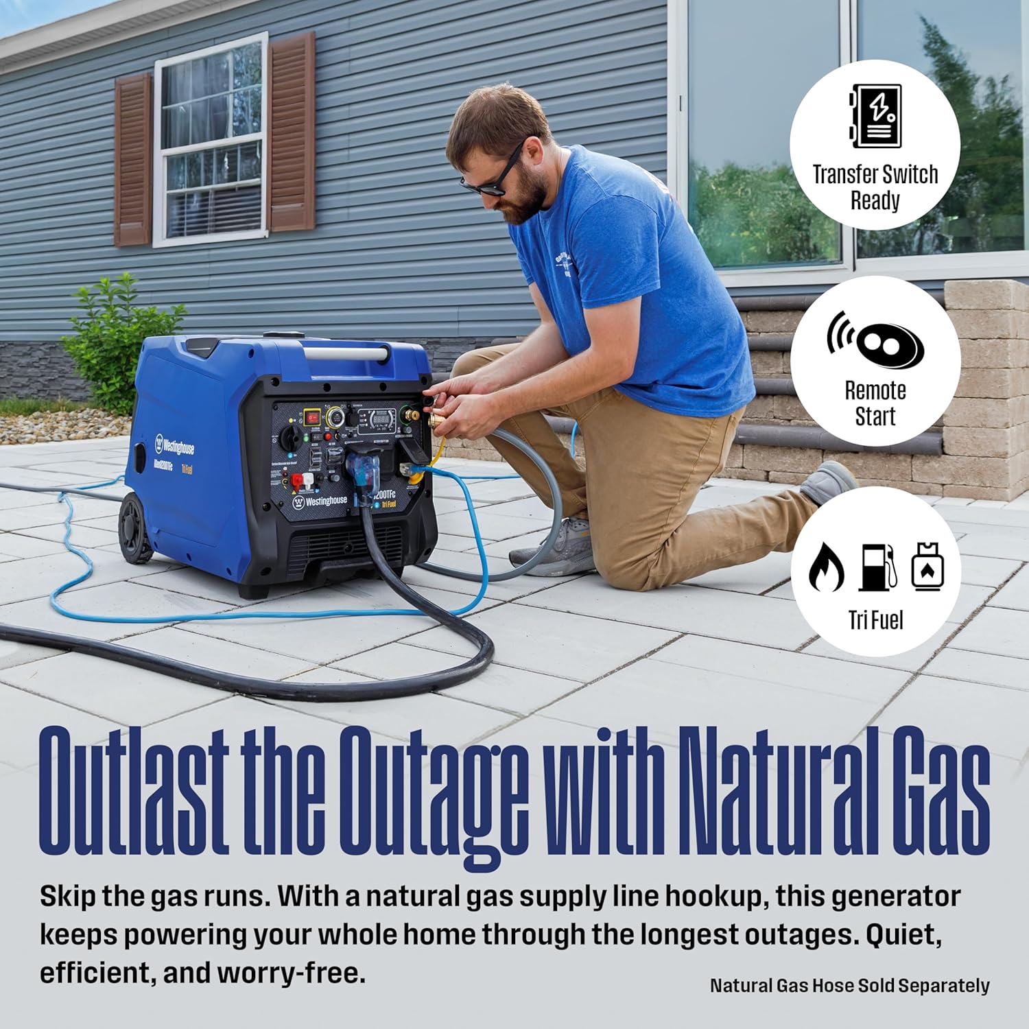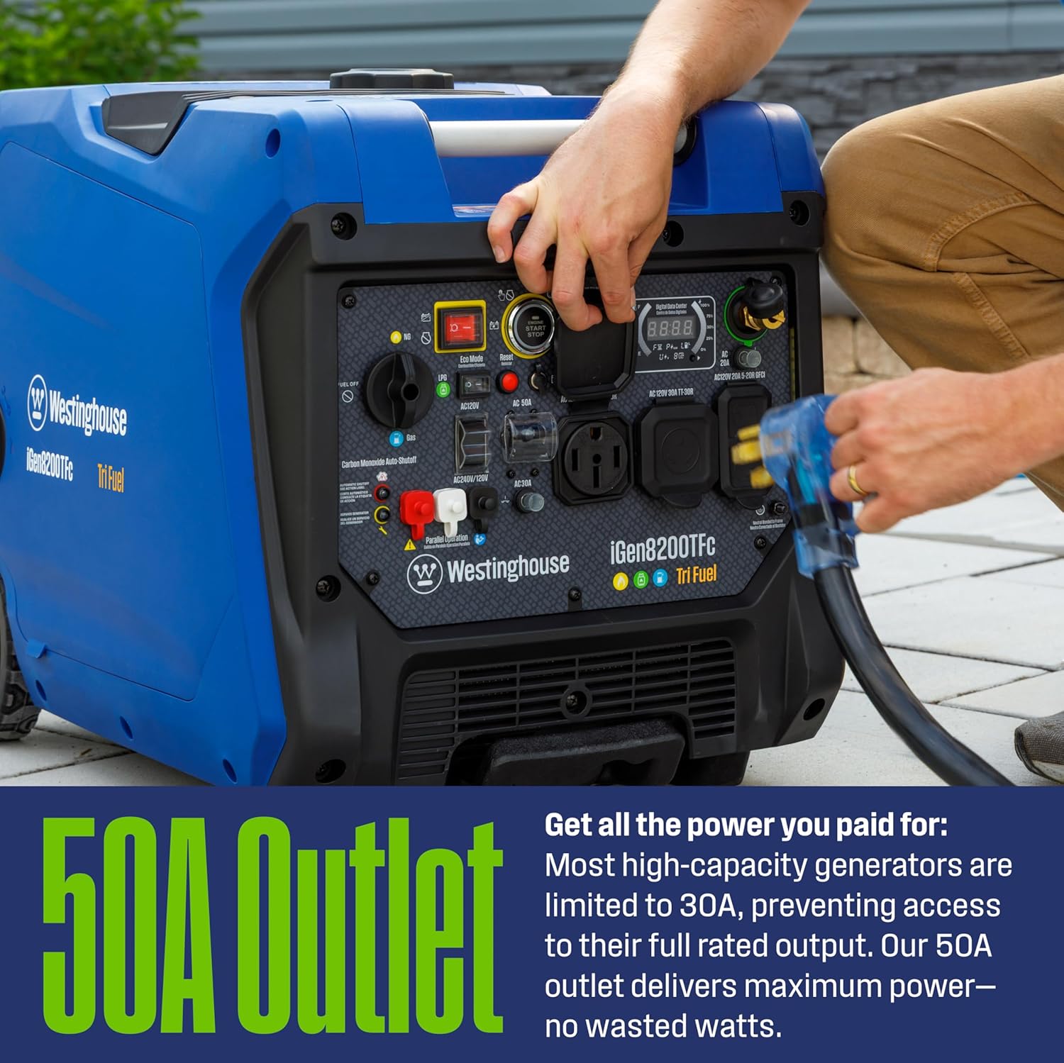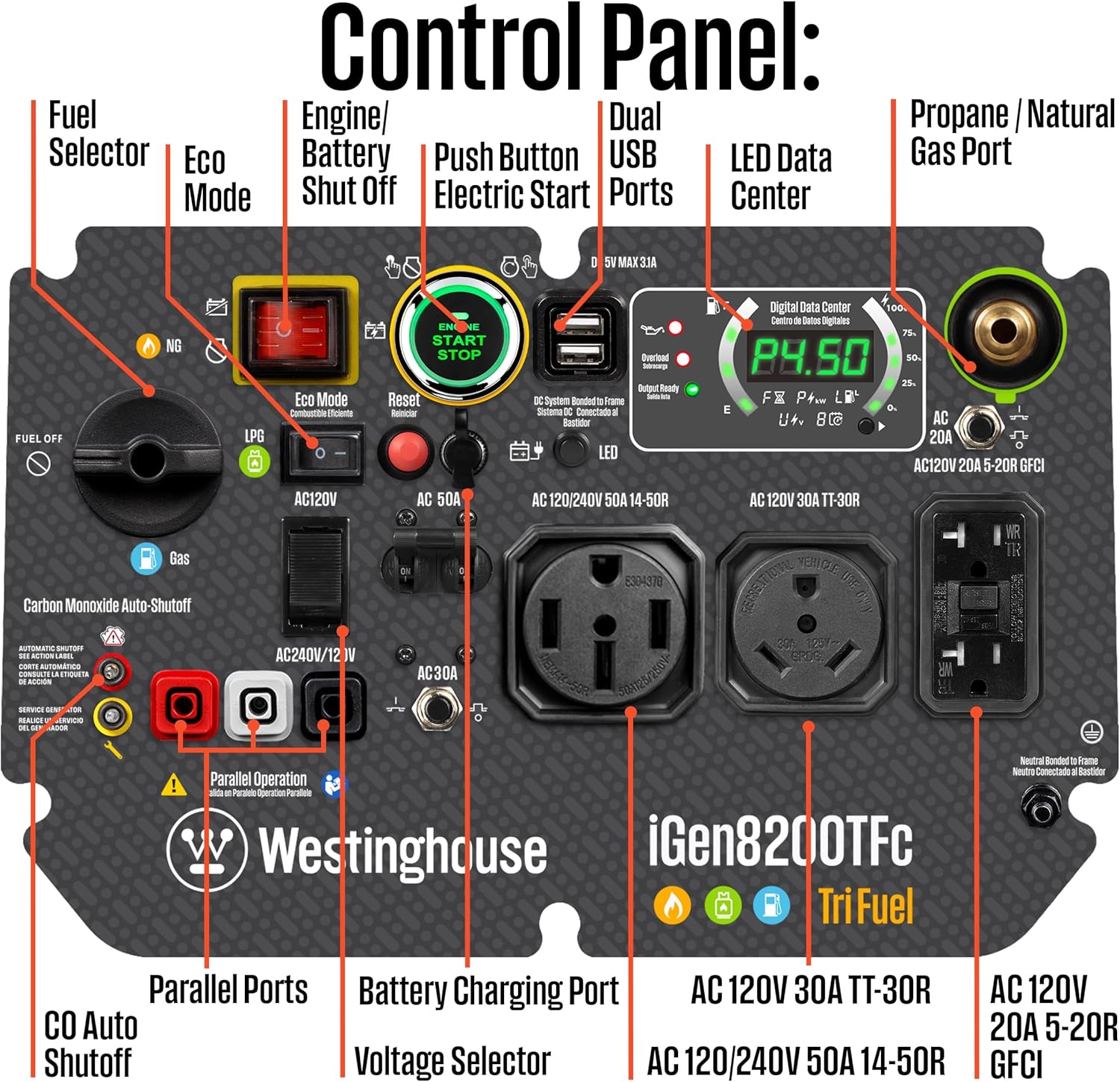 TRANSFER SWITCH OR INTERLOCK KIT READY: One 120/240V 1450R 50A outlet for home backup can run your air conditioner refrigerator sump pump and moreall at once; One RV ready 120V TT-30R 30A outlet; One GFCI 120V 520R 20A standard duplex outlet