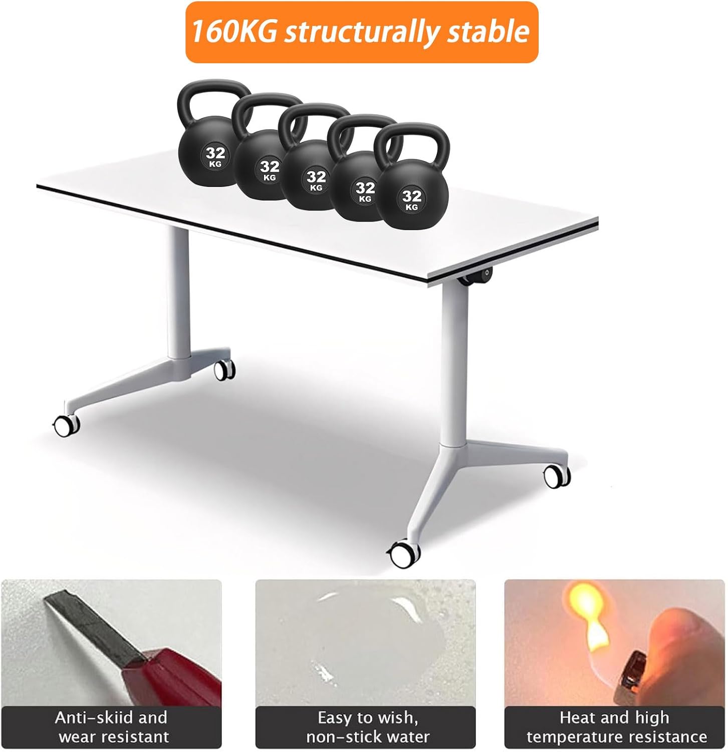 Stable & Durable: Constructed with a thickened table board made of selected wood the aluminium alloy table base and stand columns composed of cold rolled steel this folding conference table can hold up to 350 LBS. Durability and stability is ensured by training table reliable materials.