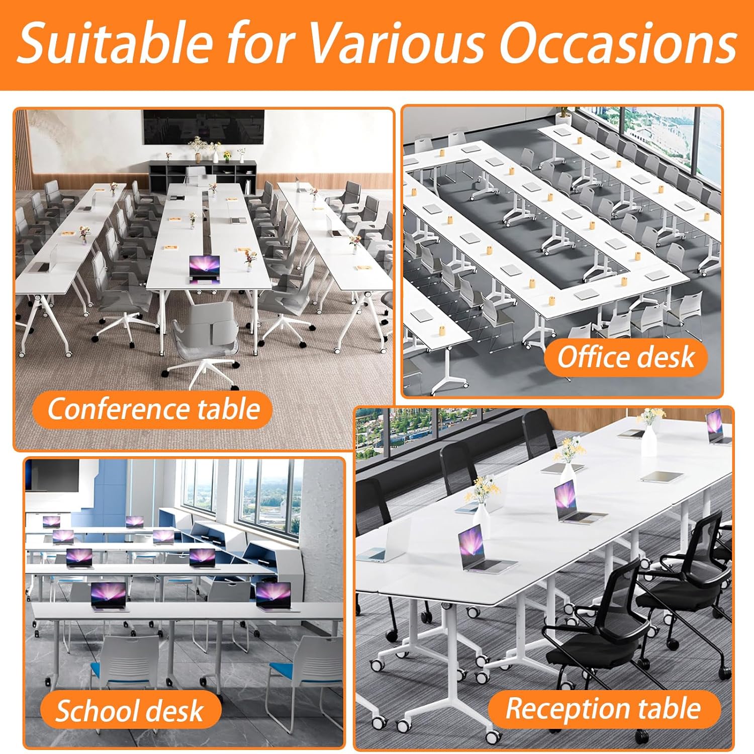 360 Universal Silent Wheels:The office table is equipped with 4 360 silent universal wheels you can easily move the folding conference table to any position in the room breaking the limitations of traditional office desks. When you need to organize a meeting whether it is a large meeting or a group meeting our conference room tables can be freely combined and matched to maximize your work needs and one person can easily complete it.