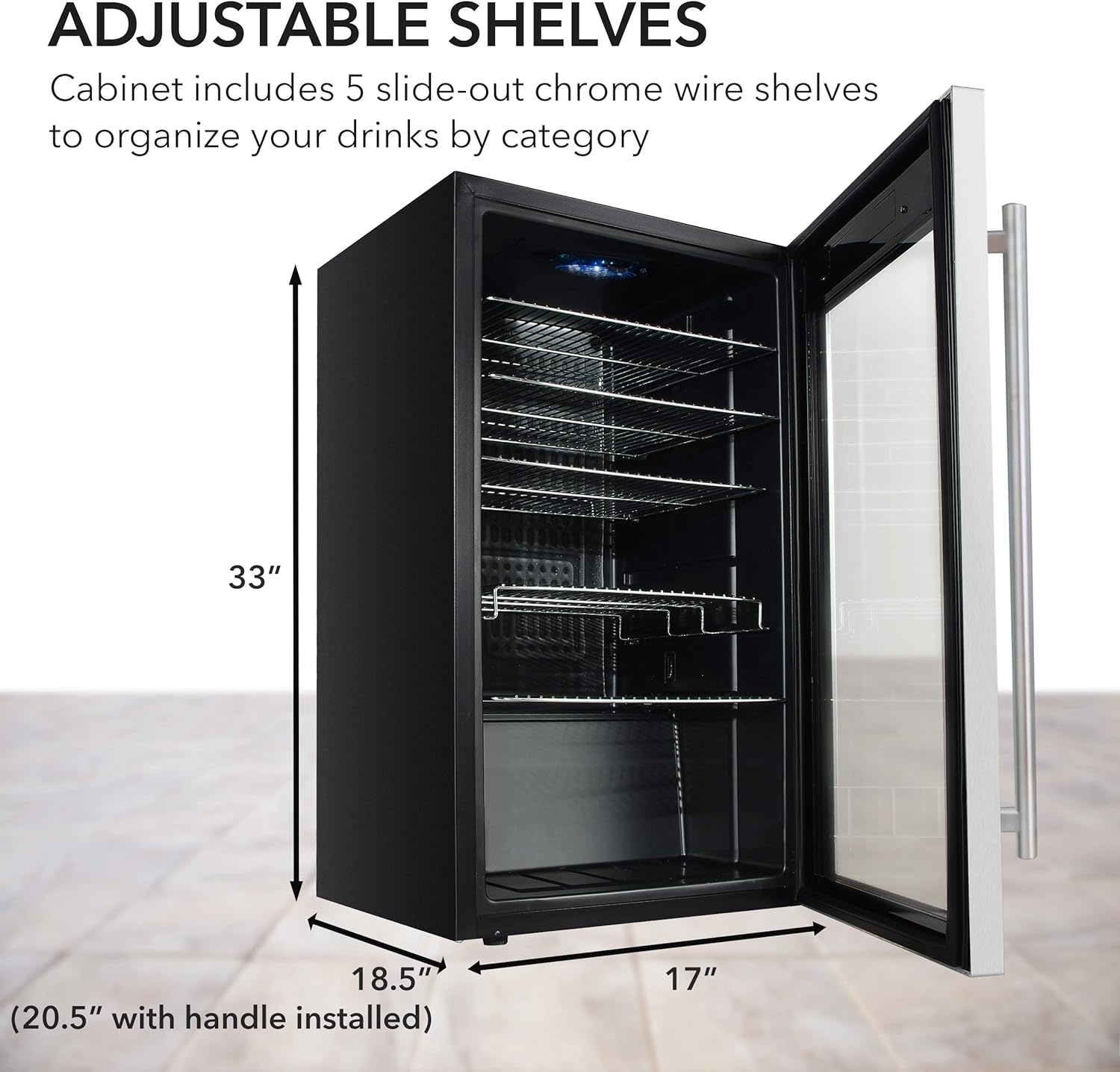 Optimal Organization: This beverage and beer fridge comes with 5 slide-out aluminum shelves that can be easily repositioned to meet your unique storage needs meaning it's simple organize your drinks by category or size