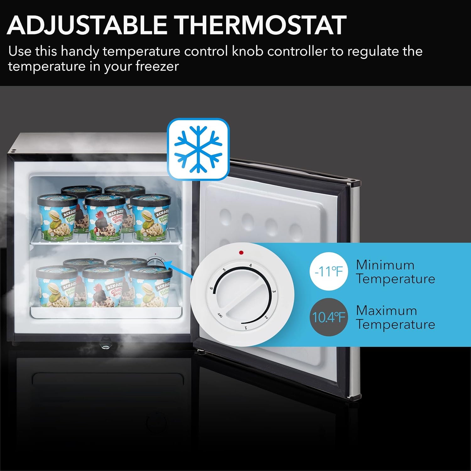 Consistent Temperature: Built to ensure efficient temperature distribution this compact freezer features a mechanical temperature control setting ranging from -11F 10.4F