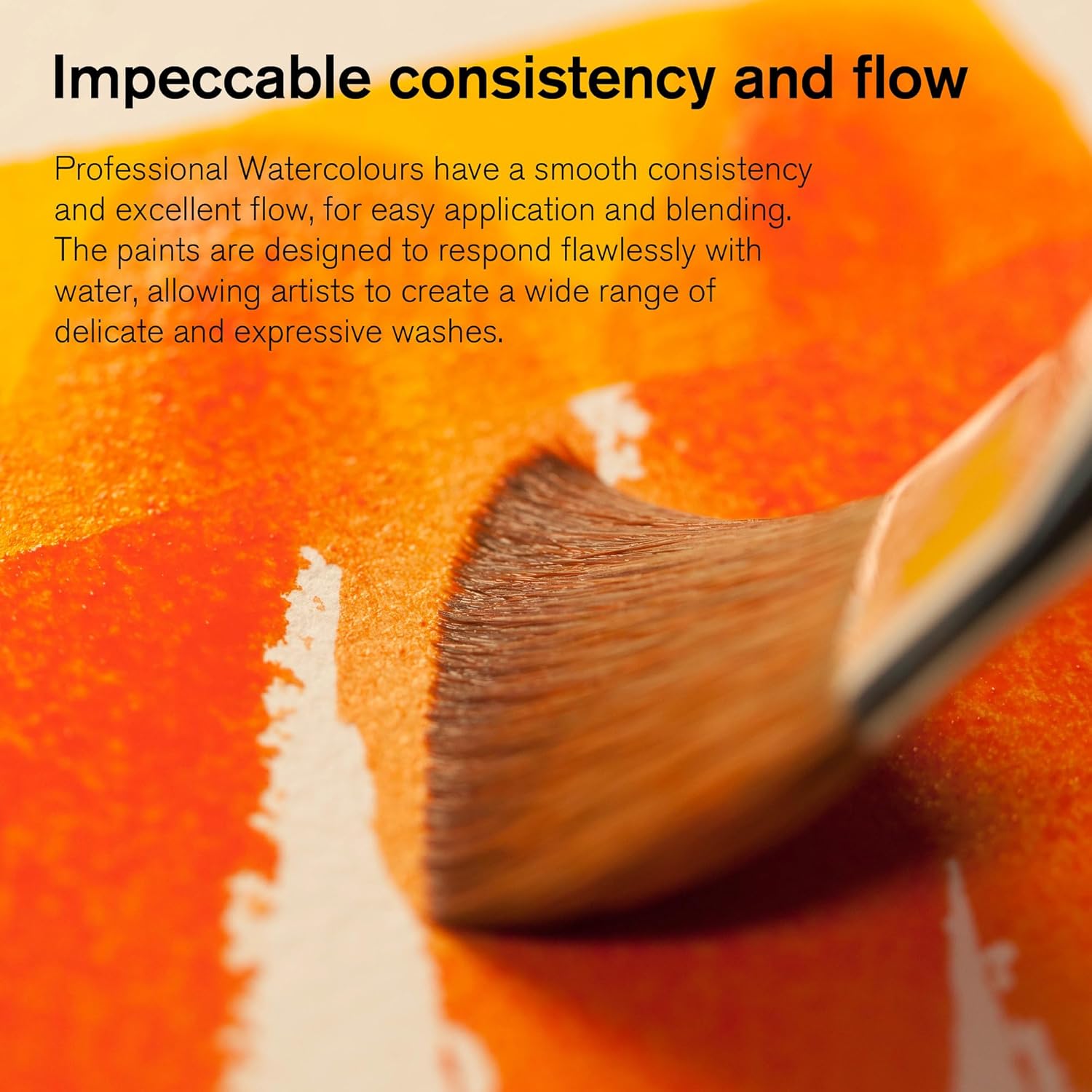 With 115 colours our Professional Watercolour range offers bright vibrant colours and unrivalled performance. Watercolour more than any other medium reflects the unique characteristics of the pigments used and our Professional Watercolours use only the finest pigments and are known for their brilliance permanence and strength of colour. Large range of single pigment colours With 85 single pigment colours in the range we offer the widest range of modern and traditional pigments for clean colour mixing. Unrivalled Transparency The transparency of our Professional Watercolour is achieved by our unique process of pigment dispersion during manufacture. The natural characteristics of each pigment highlights the paints transparency level. In watercolour painting thin washes are applied allowing the white of the paper to reflect through the wash. Permanence 112 out of 115 colours in our Professional Watercolour range are classed as ""permanent for artists' use rated AA or A for archival permanence to ensure that these colours used today will appear the same for generations to come.