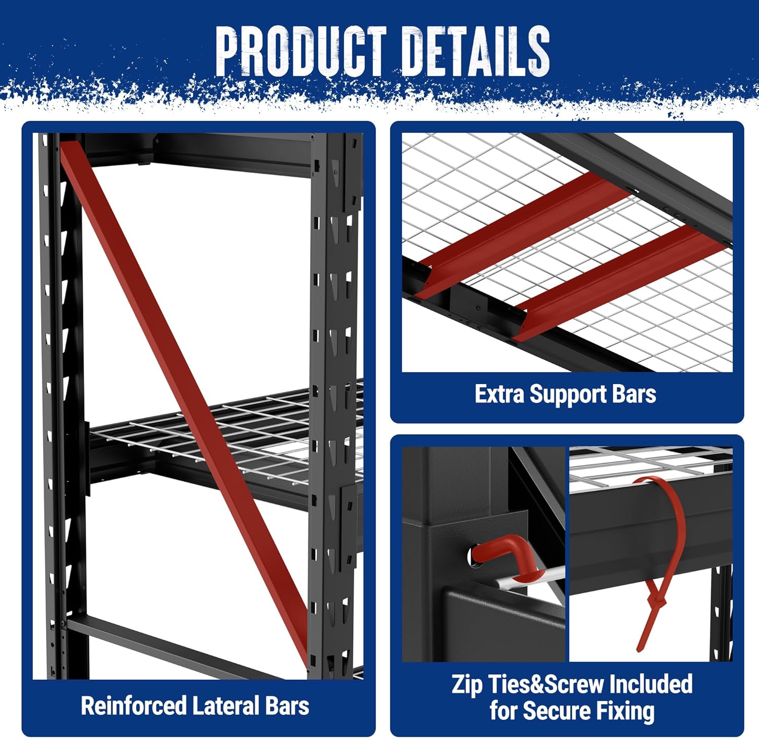 [EXTRA Wider & Deeper ] 77"W x 24"D x 72"H, means this 4-tier tall and large shelving unit offers sufficient space for big items. Fits all box sizes and equipment, making storage easy and organized.