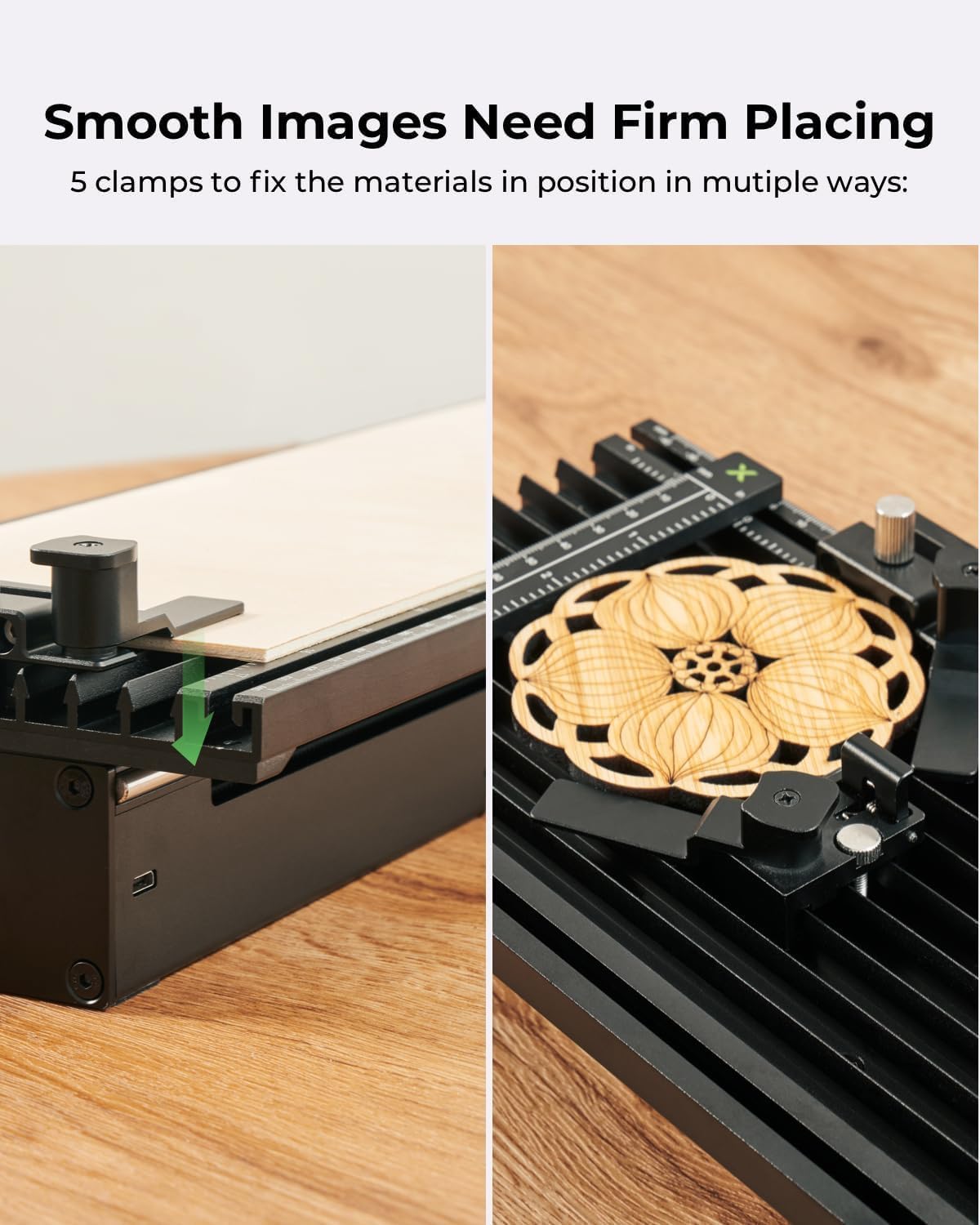 [5 Clamps for Stability and Accuracy] Two clamps will be provided to fix edges while 3 clamps will be used to fix all shapes. There is no need to worry about placement as stability and accuracy are guaranteed.