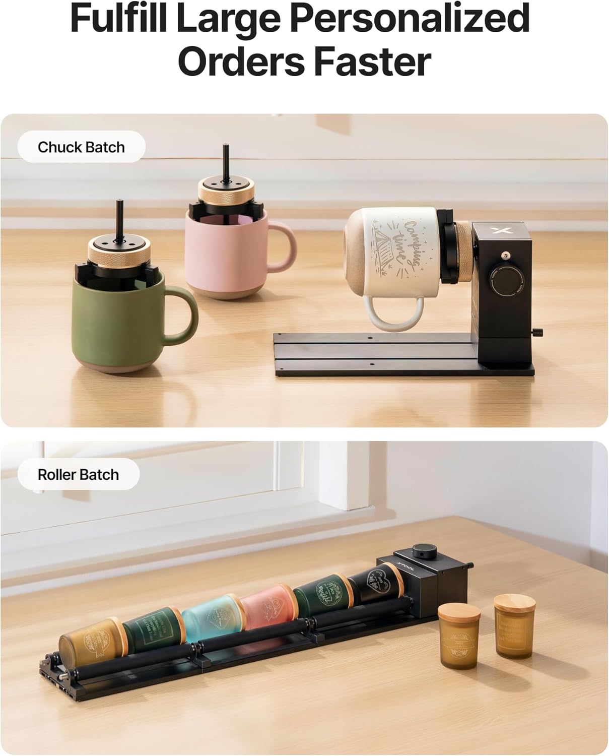 Expand Your Engraving Canvas: The RA3 expands your engraving limits offering full-wrap engraving on vases and detailed work on various rounded objects. It features an enlarged 130mm chuck for large items and new batch processing for both roller and jaw modes to significantly boost efficiency on high-volume and custom work. (Note: batch processing kits are separate purchases.)