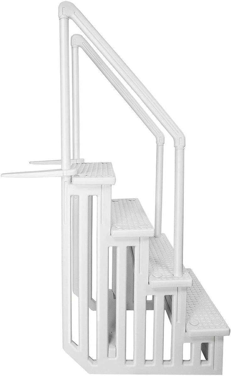 Includes mounting brackets to safely secure the ladder to your pool or deck. Each wide step has a dimension of 31.5 inches x 10.5 inches so there is no way you can miss a step when entering or leaving the pool
