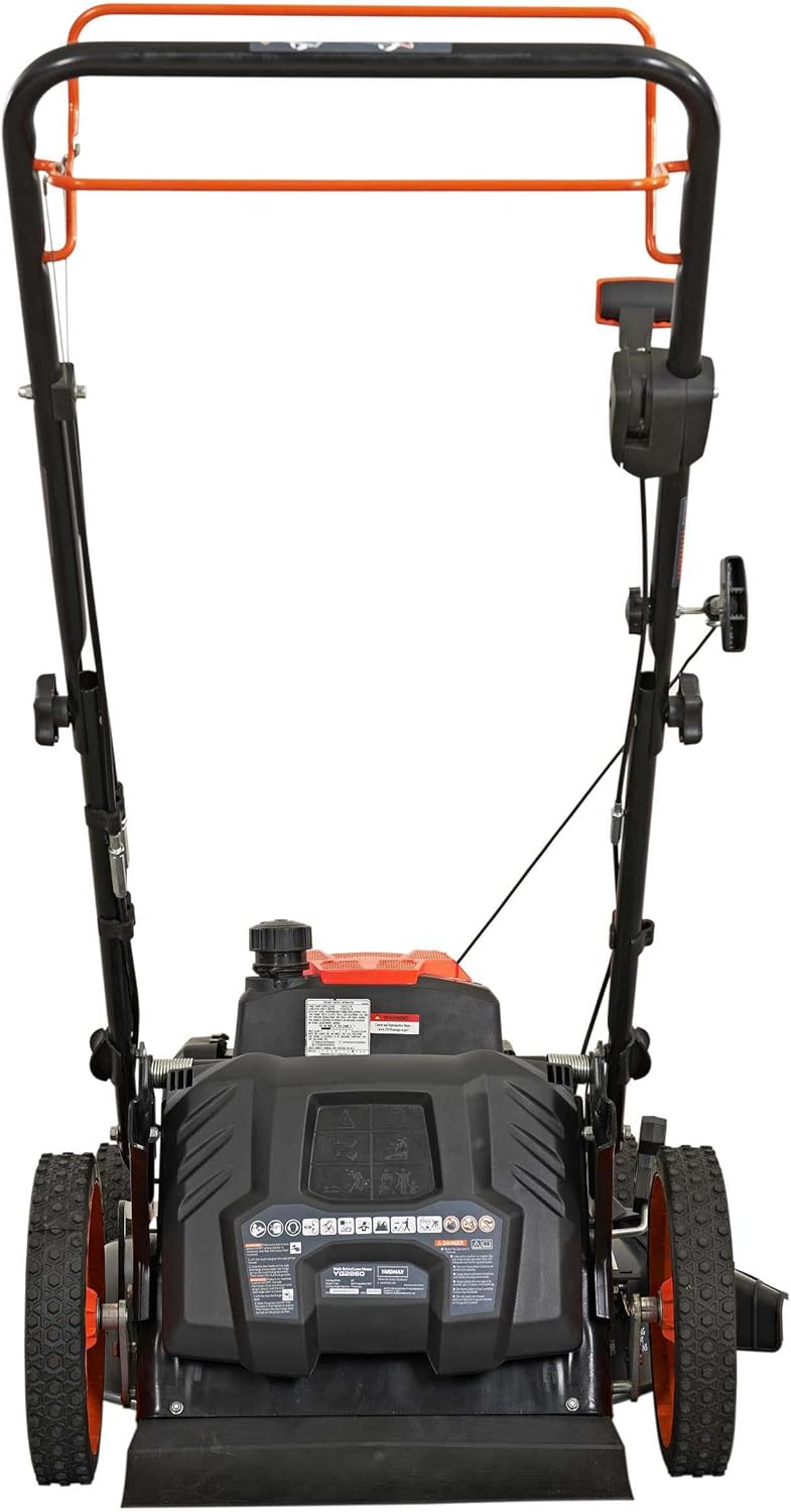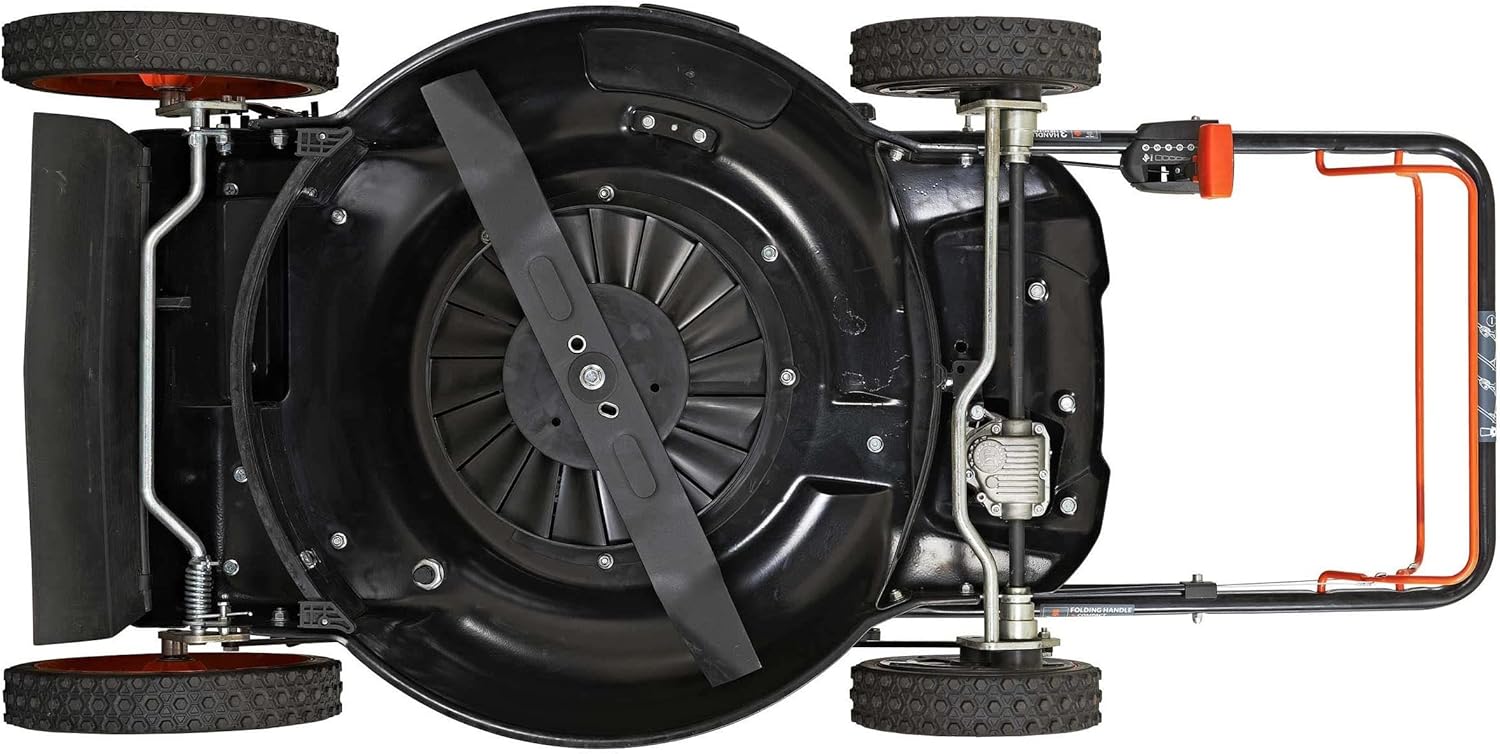 The 22" 3-in-1 front wheel drive (FWD) Self Propelled Lawn Mower will make cutting your lawn quick and easy with its high performance 201cc OHV engine with automatic choke system for an easy start no priming or choking is required. The YG2860 features exclusive and industry leading continuously variable transmission (CVT) offering superior speed variability to keep the mowing at a suitable and a comfortable pace adapting to your walking speed. The high-rear-wheels are perfect for uneven terrain and are equipped with double ball bearings and exclusive aggressive spiked tread rubber tires for an increased traction and maneuverability. This mower offers seven cutting heights from 1.38" to 3.55 allowing you to cut your lawn to your specifications by using a single convenient lever. The MaxFlow volute deck is designed to keep grass clippings airborne longer for superior mulching or for flowing into the rear bag when needed. Convenient deck washout port allows you to clean the deck's underside quickly and easily simply attach a hose to the port and let the water flush out the dirt so you're ready for your next mow. Space saver the entire mower can be compactly folded for storing in small garage spaces. Fully assembled just unfold the handle and youre ready to go. The YG2860 will make your yardwork job easy and will provide reliable performance and clean-even cut season after season