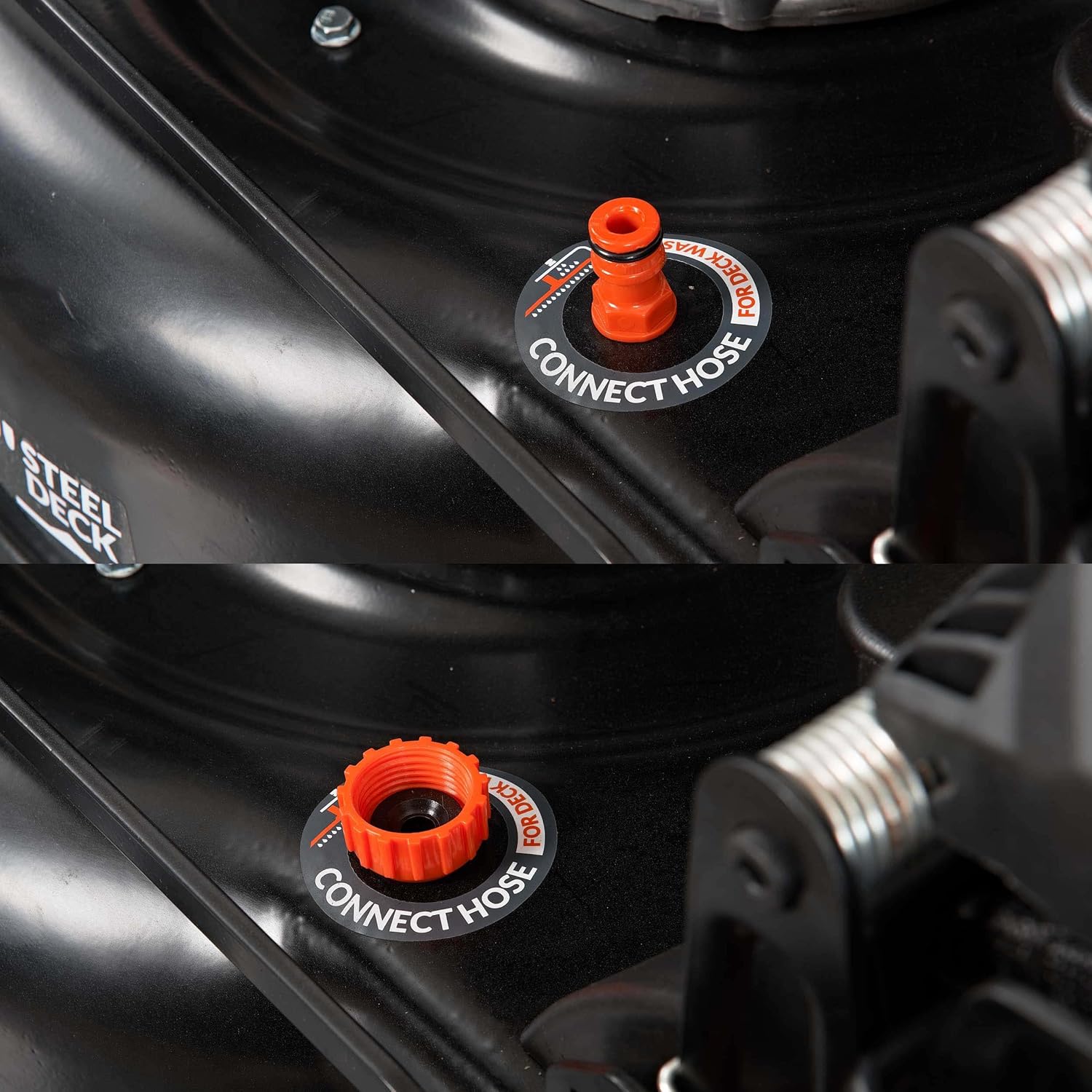 Quickly clean the underside of the cutting deck with the deck cleanout port