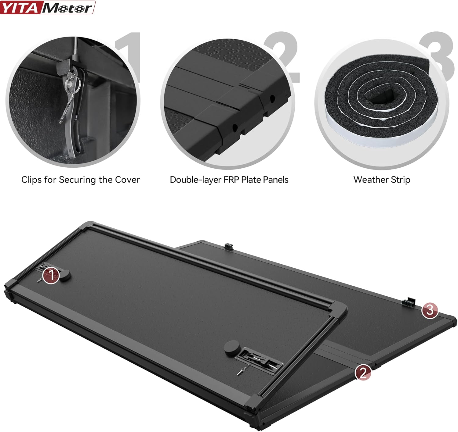 No-drill Installation: Install the hard tri-fold tonneau cover in no time without any drilling or modifications needed; Comes with detailed instructions for added convenience; Note that if your truck has cargo racks remove them before installing this cover