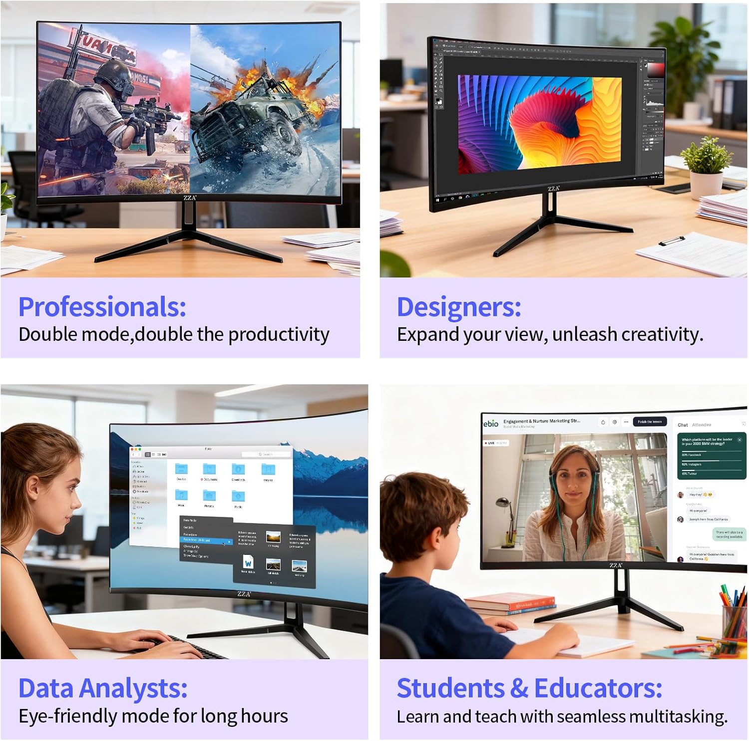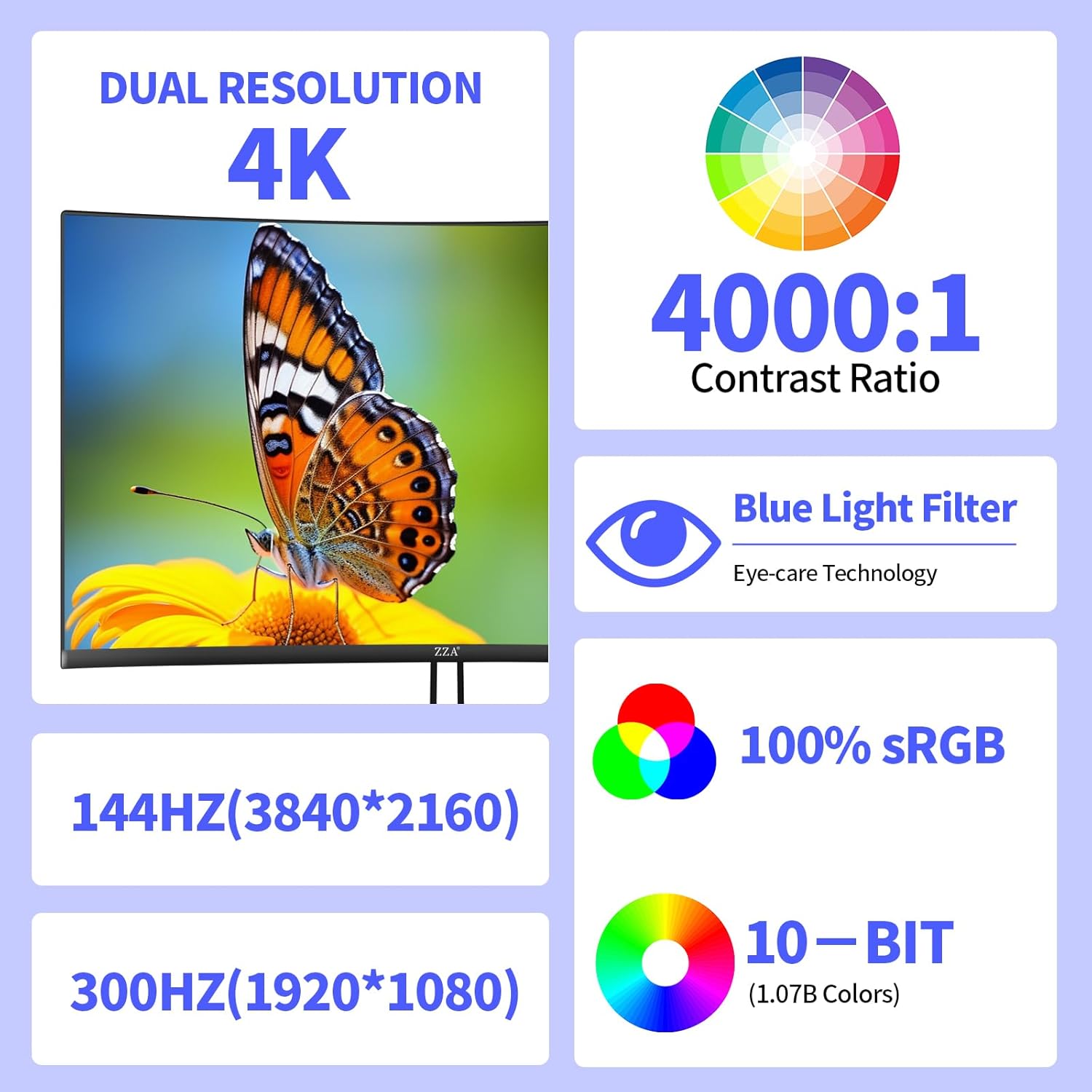 The 4K UHD 144Hz/FHD 300Hz dual mode monitor offers versatility for both gaming and design ensuring that whether you're playing or editing you'll benefit from vibrant colors and smooth performance.4k curved monitor with 2x HDMI 2.1 ports and 2x DP 1.4 port.