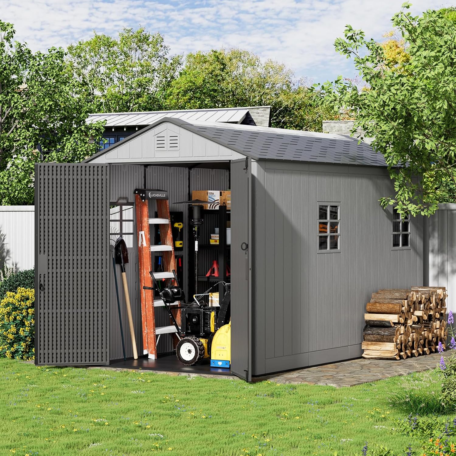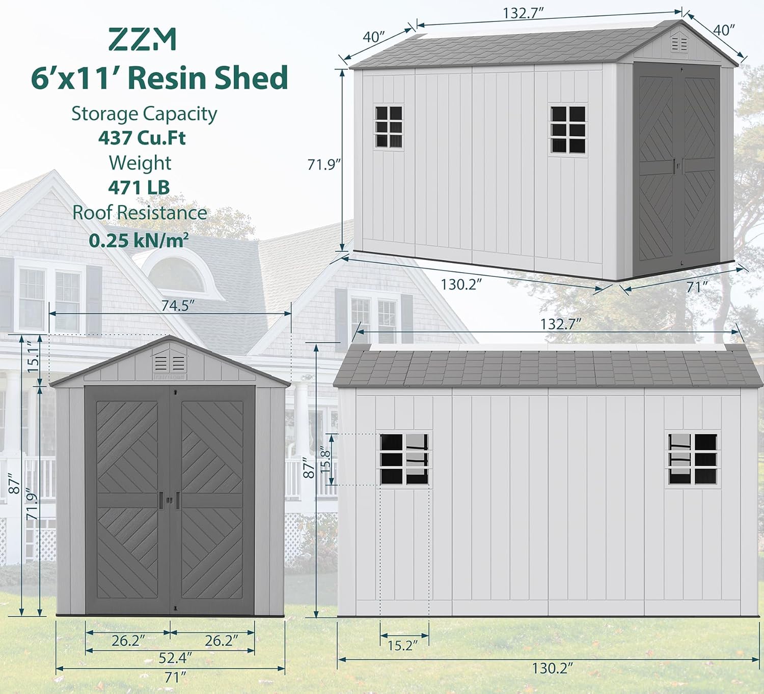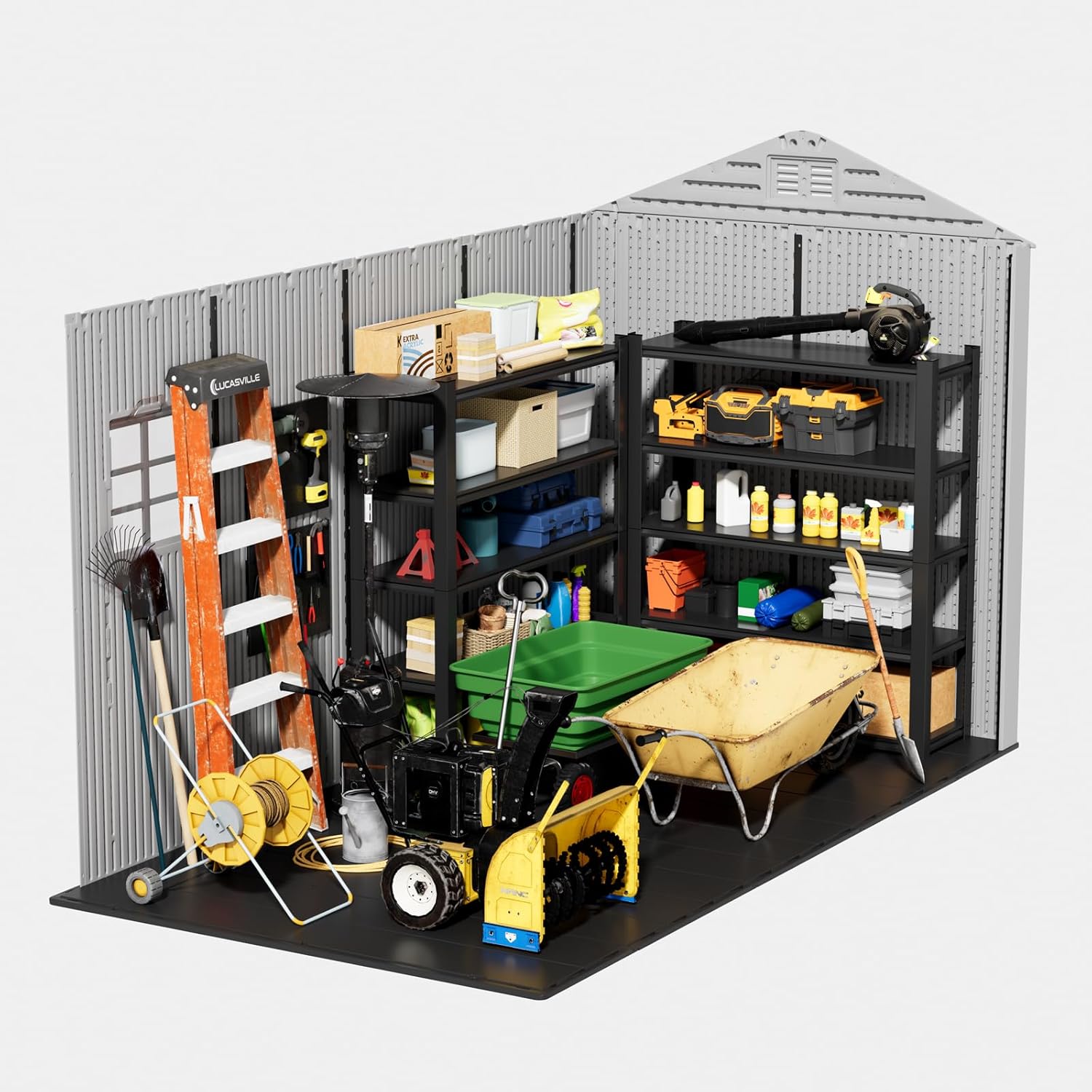 All-weather Resistant Sheds-- We select HDPE Resin as raw material because its UV-protected that will maintain long-term service-life. The subtle design and strict technical craftsmanship make it Waterproof Anti-wind dont be afraid of torrential rain and snow-retention.