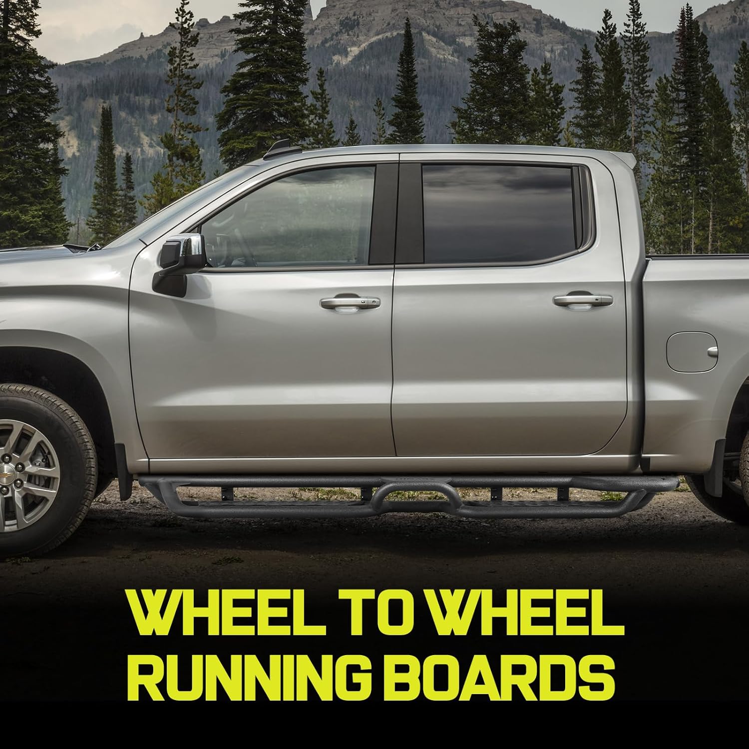 Running Boards Compatible with 2015-2026 Chevy Colorado/GMC Canyon Crew Cab. Colorado Running Boards with Bed Access Step and Center Step. 6 Inch Carbon Steel Side Steps.