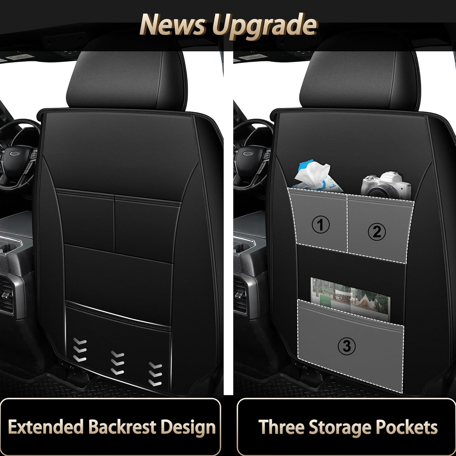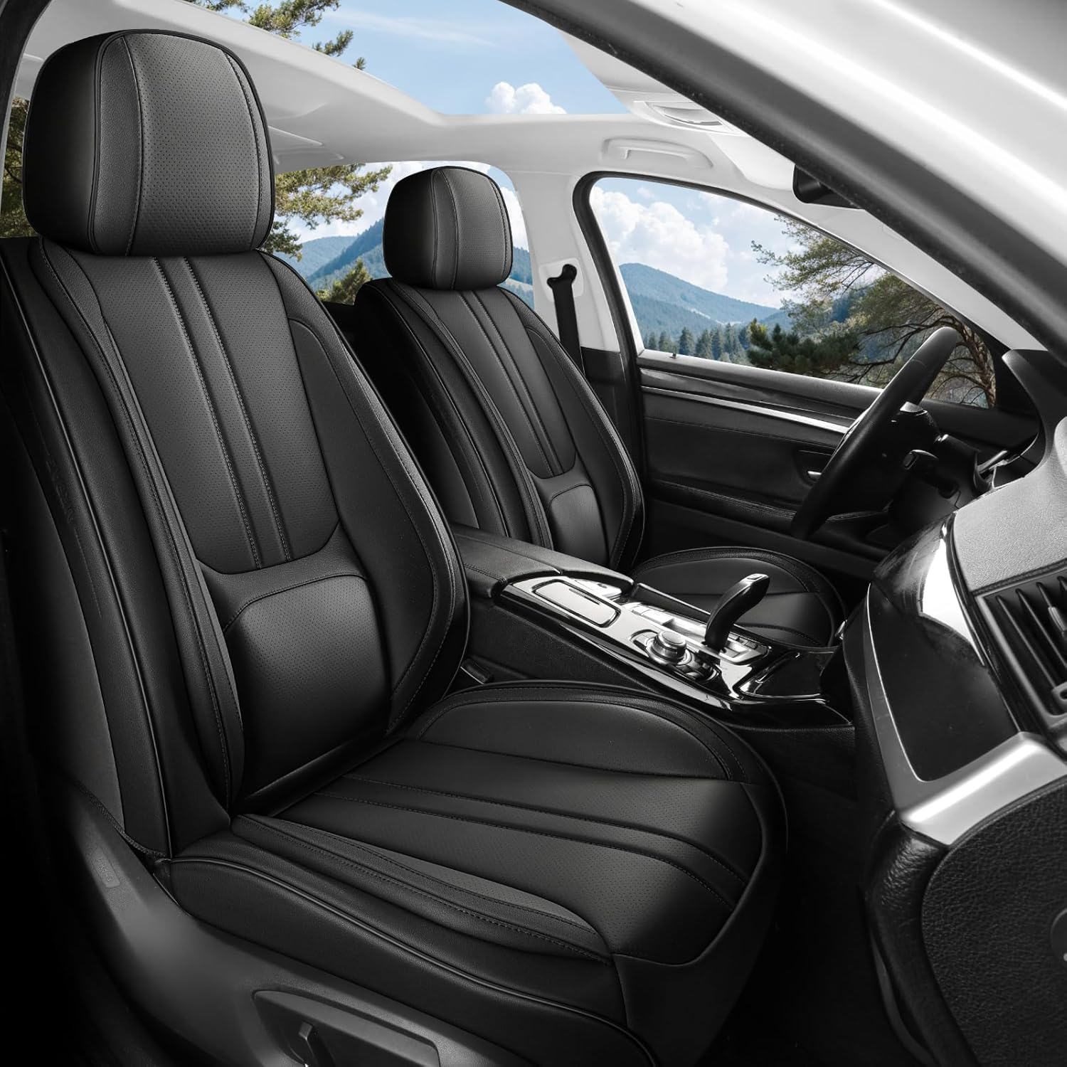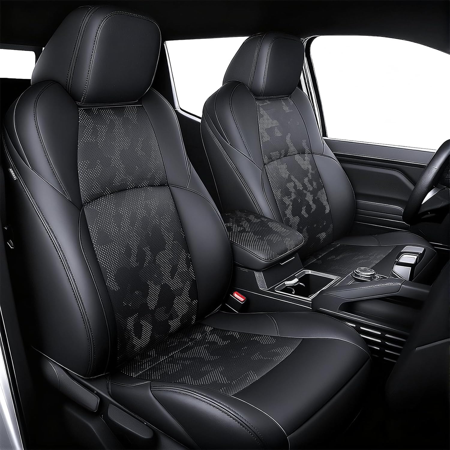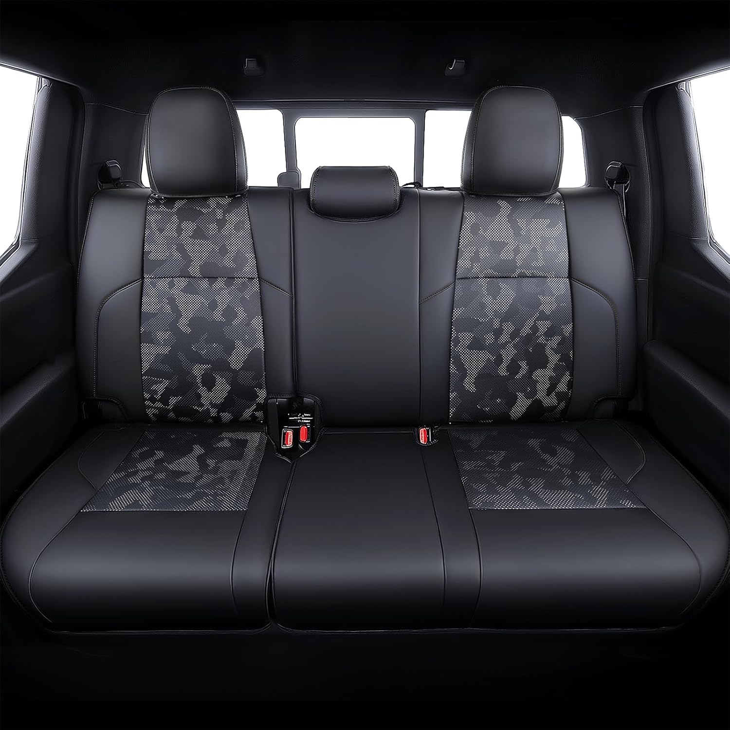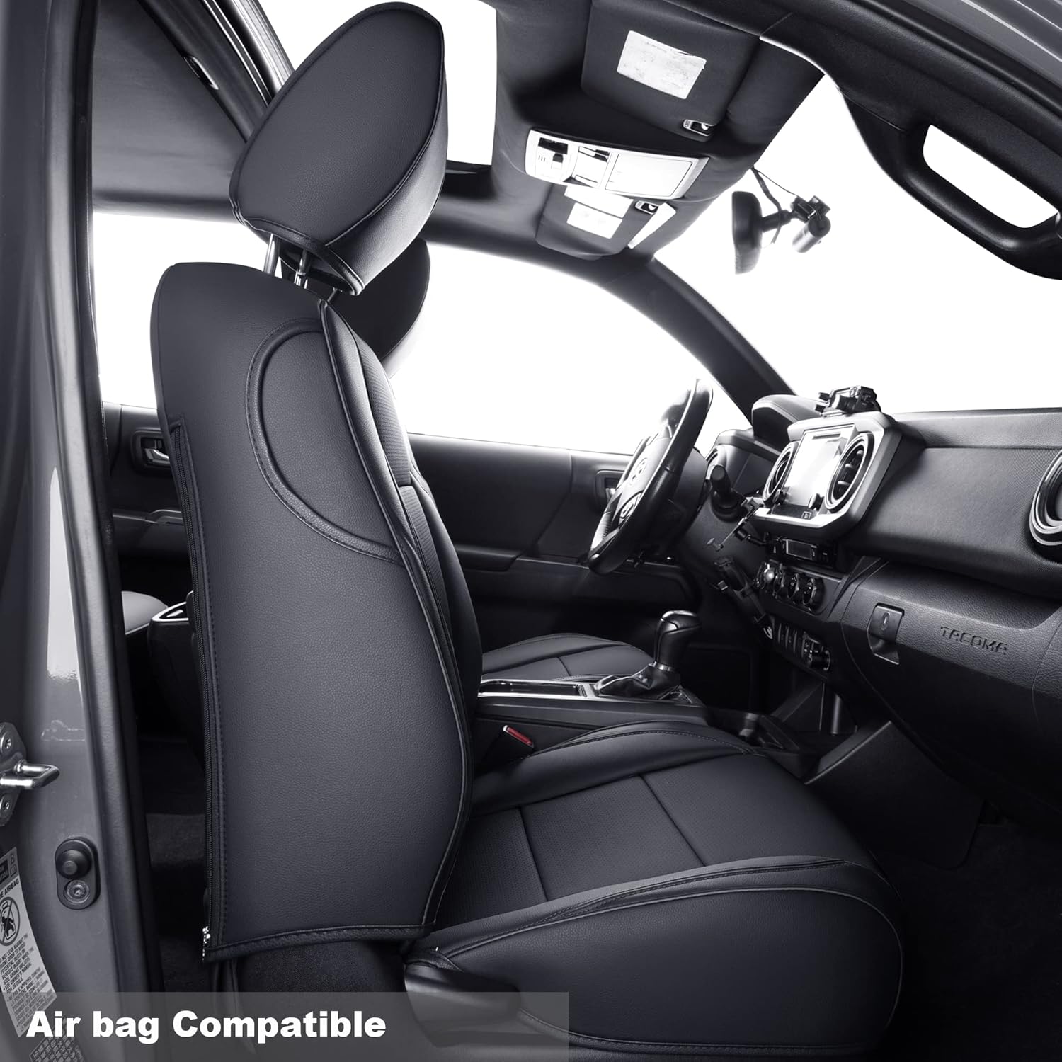 Tacoma Custom Fit Seat Covers for 2016-2023 Tacoma Crew Cab with Faux Leather (Black)