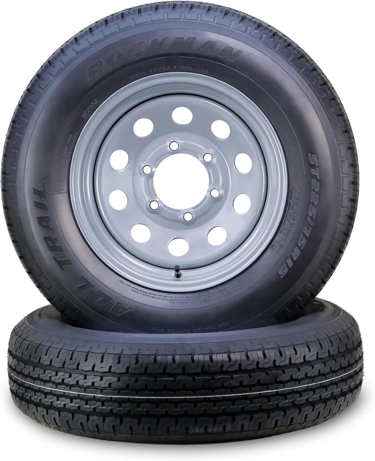 Trailer Tire Wheel Assembly ST225/75R15 10-Ply E 117M 6 Lug on 5.5" PCD Silver Mod Rim SET 2