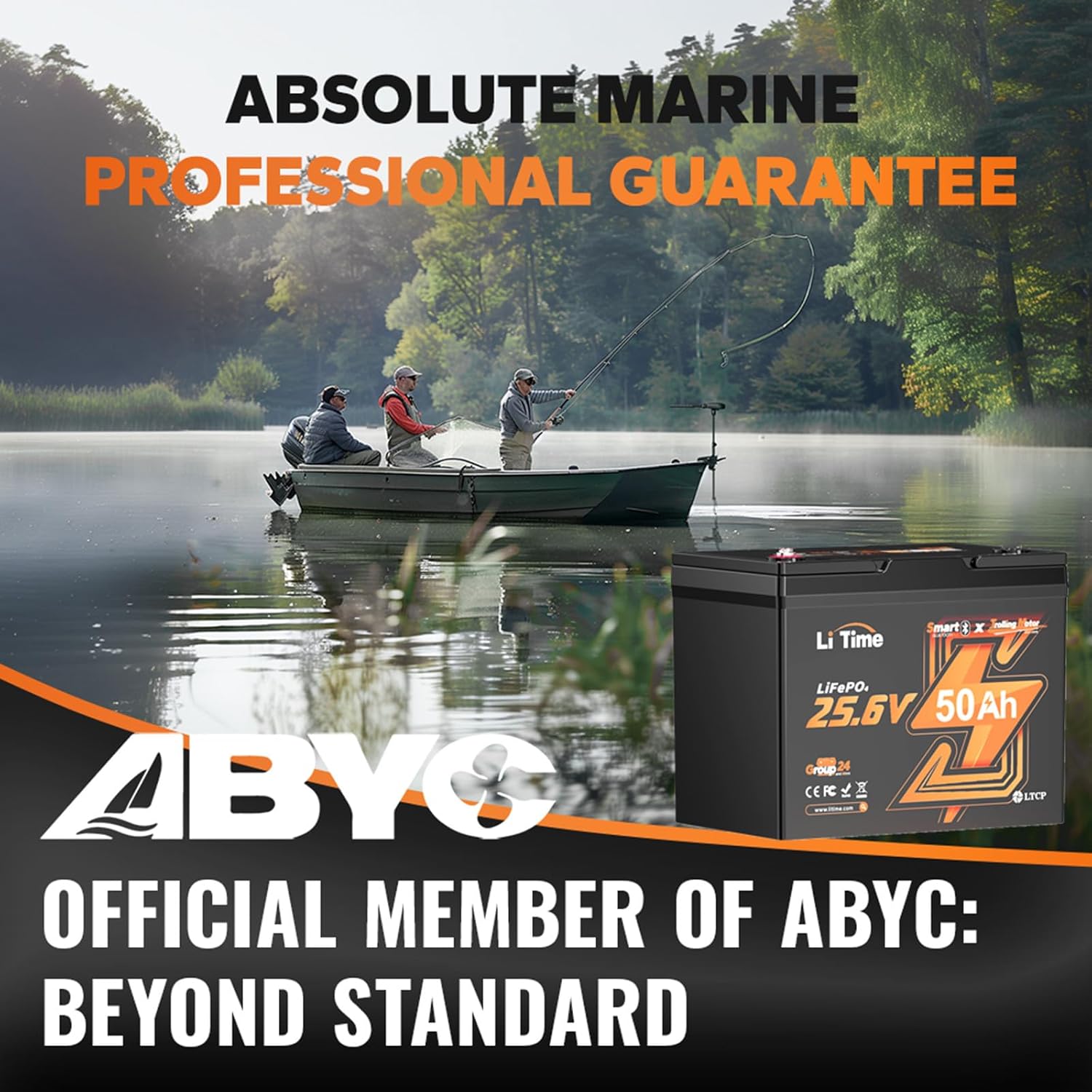 24V 50Ah Bluetooth LiFePO4 Lithium Battery Low-Temp Cutoff Protection 4000+ Deep Cycle Built-in 50A BMS Group 24 Perfect for Trolling Motors Yacht Boat RVs