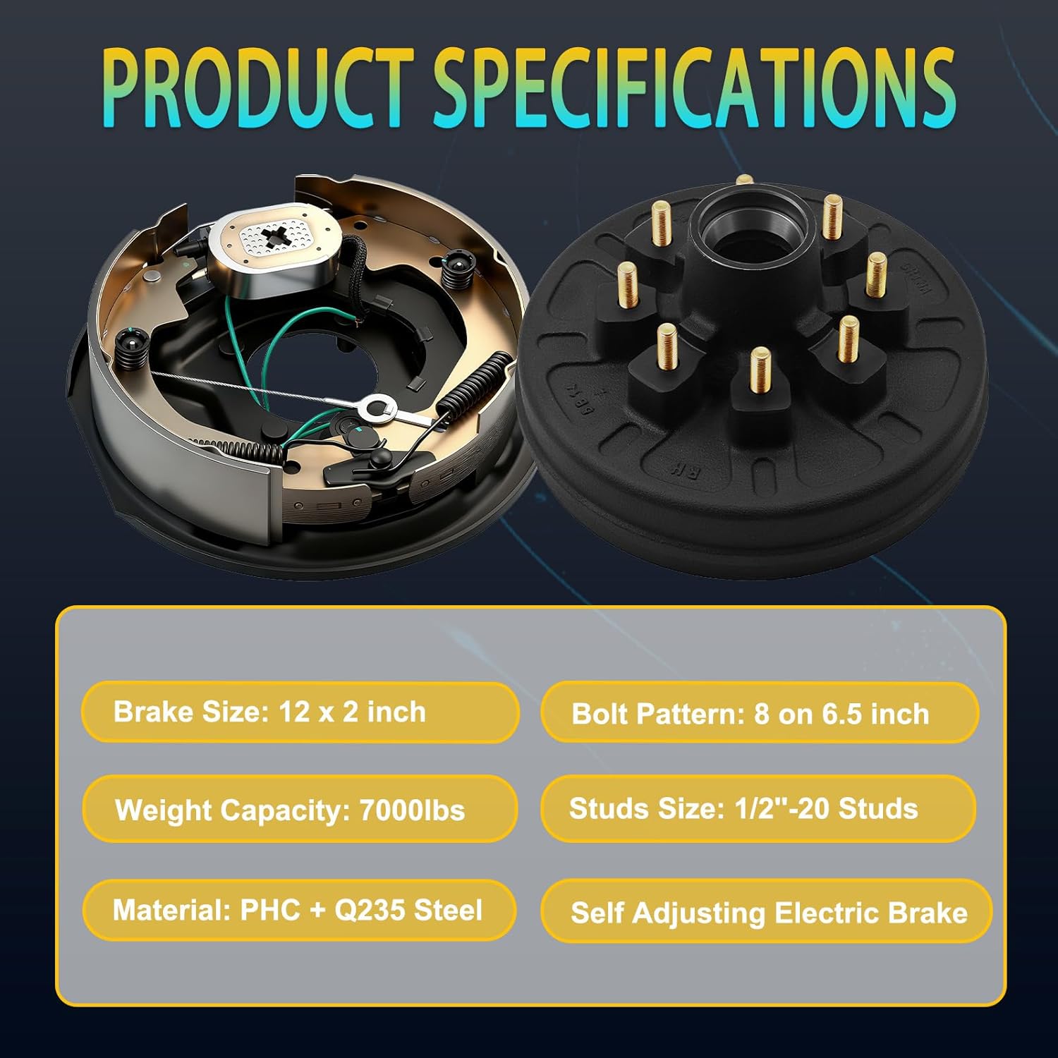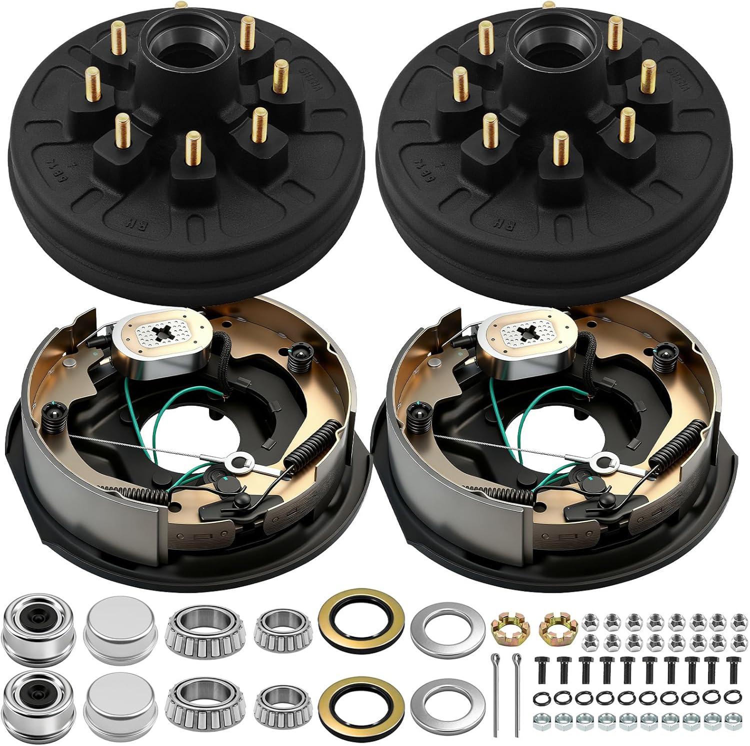 7 000 lbs Self-Adjusting Electric Brake Trailer Axle Brake Kit 8 Lug 6.5" Bolt Circle Brake Drum with 1/2''-20 Studs Replacement 12" Brake Hub Drum Assembly