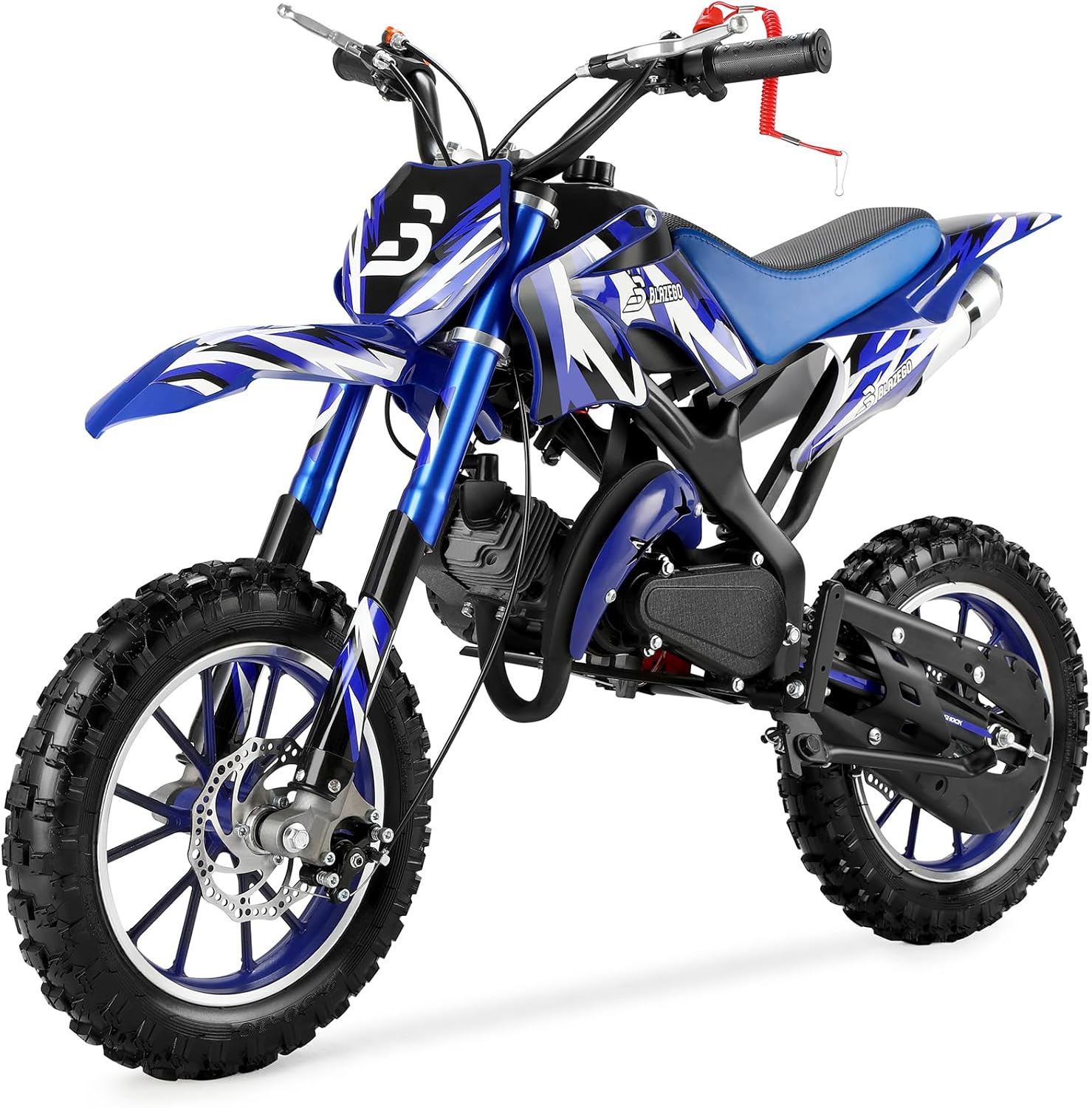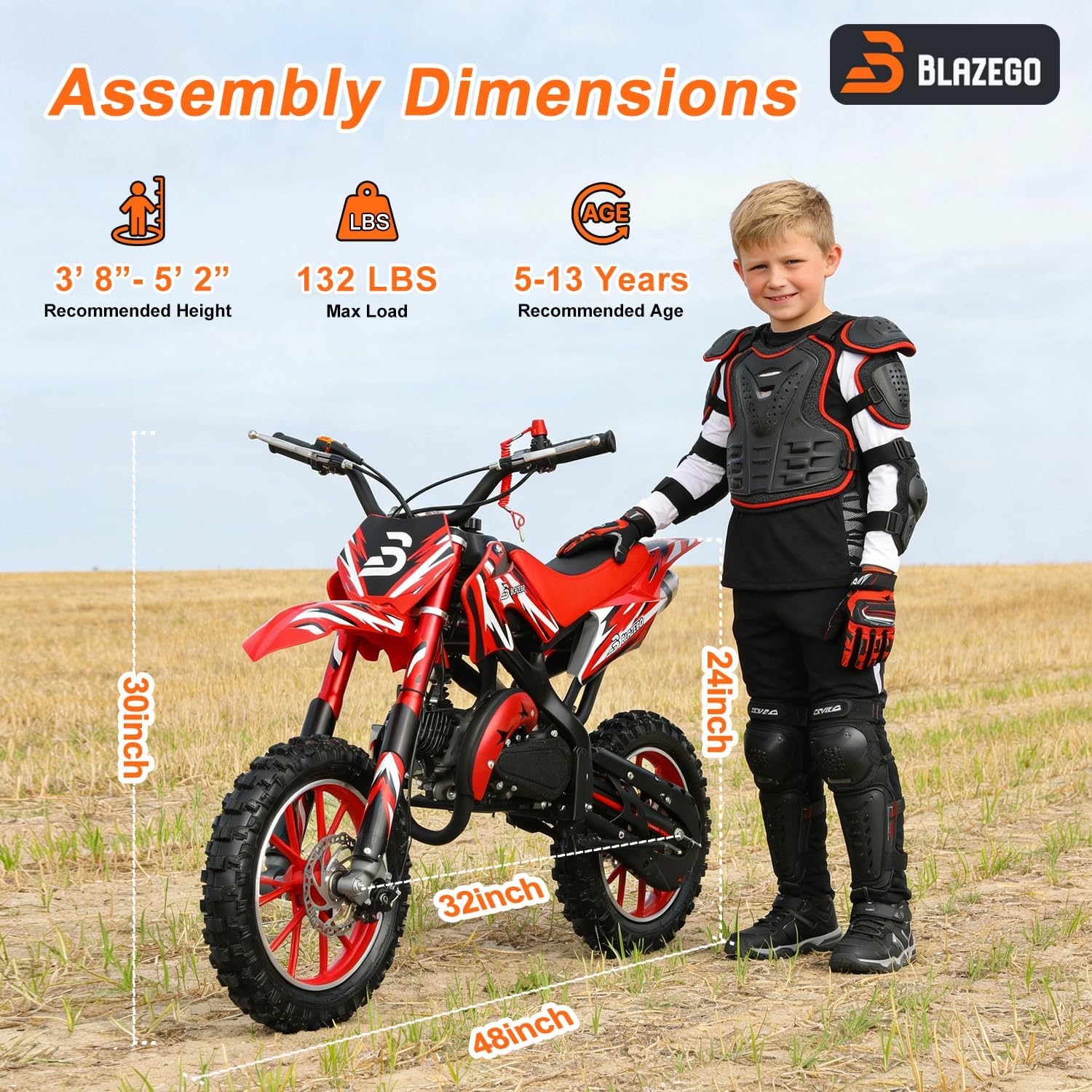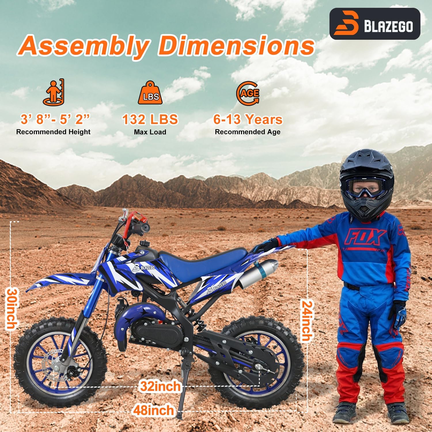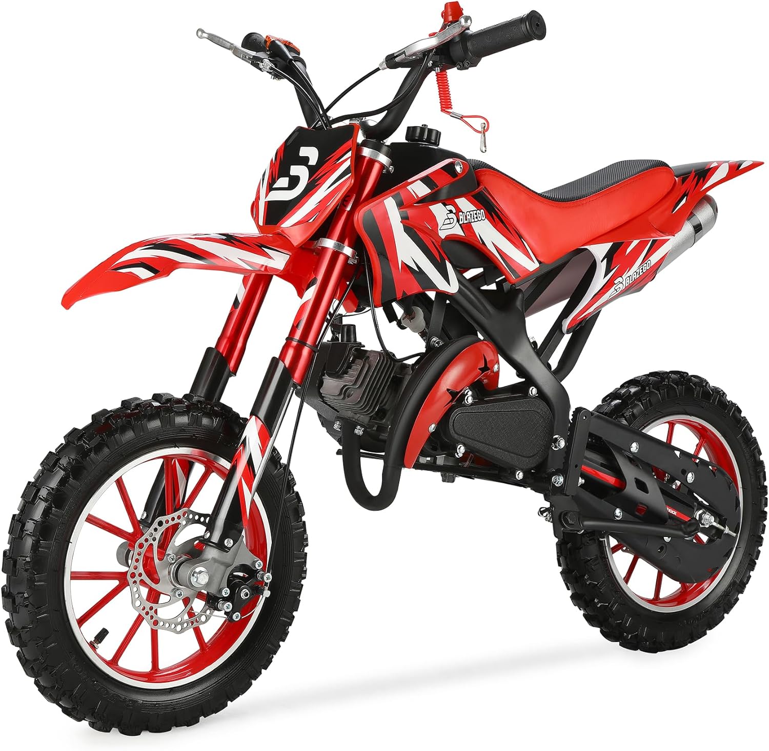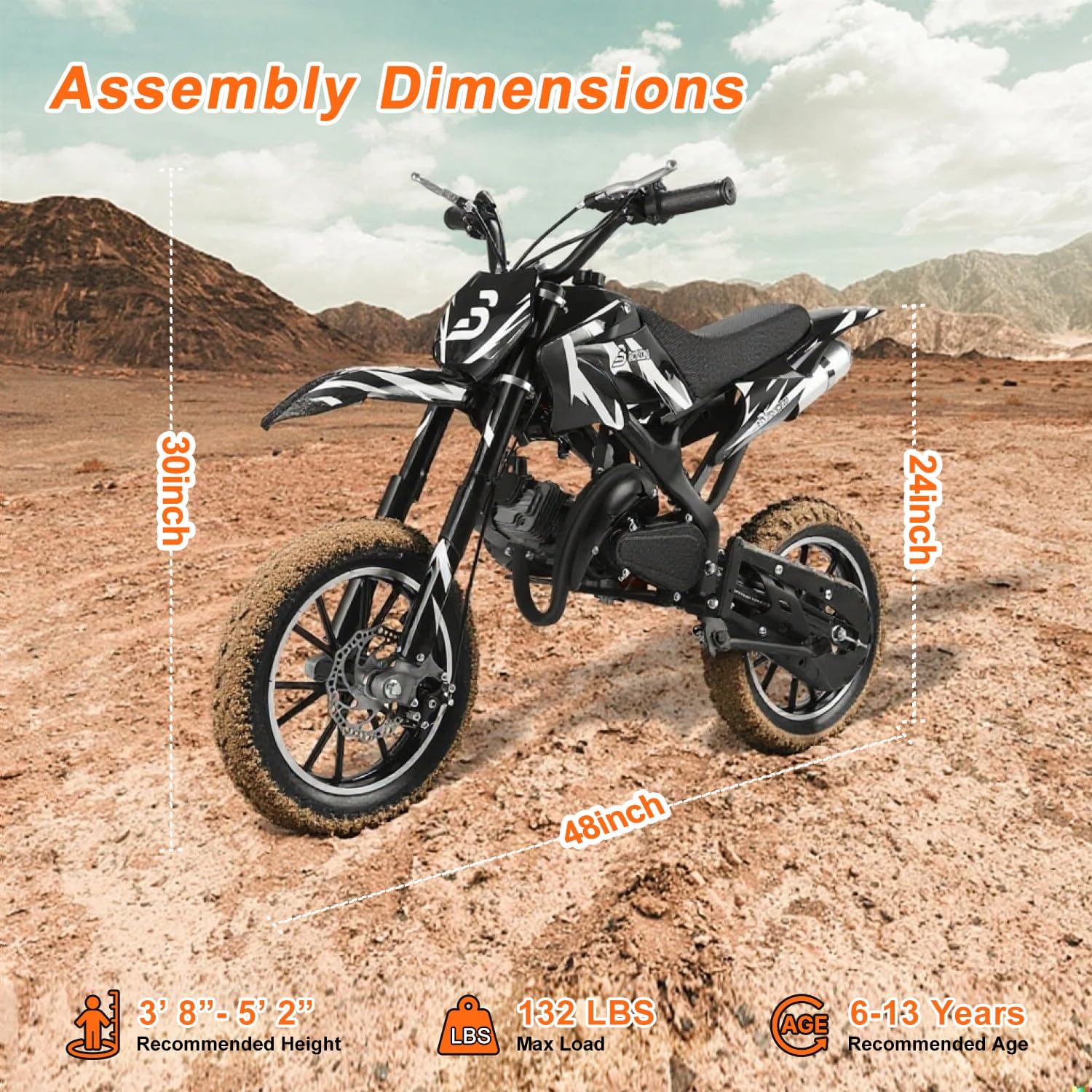 49CC Kids Gas Dirt Bike 2-Stroke Gas Powered Motorcycle Dual Disc Brakes Front & Rear Shock 10" Off-Road Tires 28 MPH Top Speed 132 LBS Max Load Mini Dirtbike for Kids 8-14 White