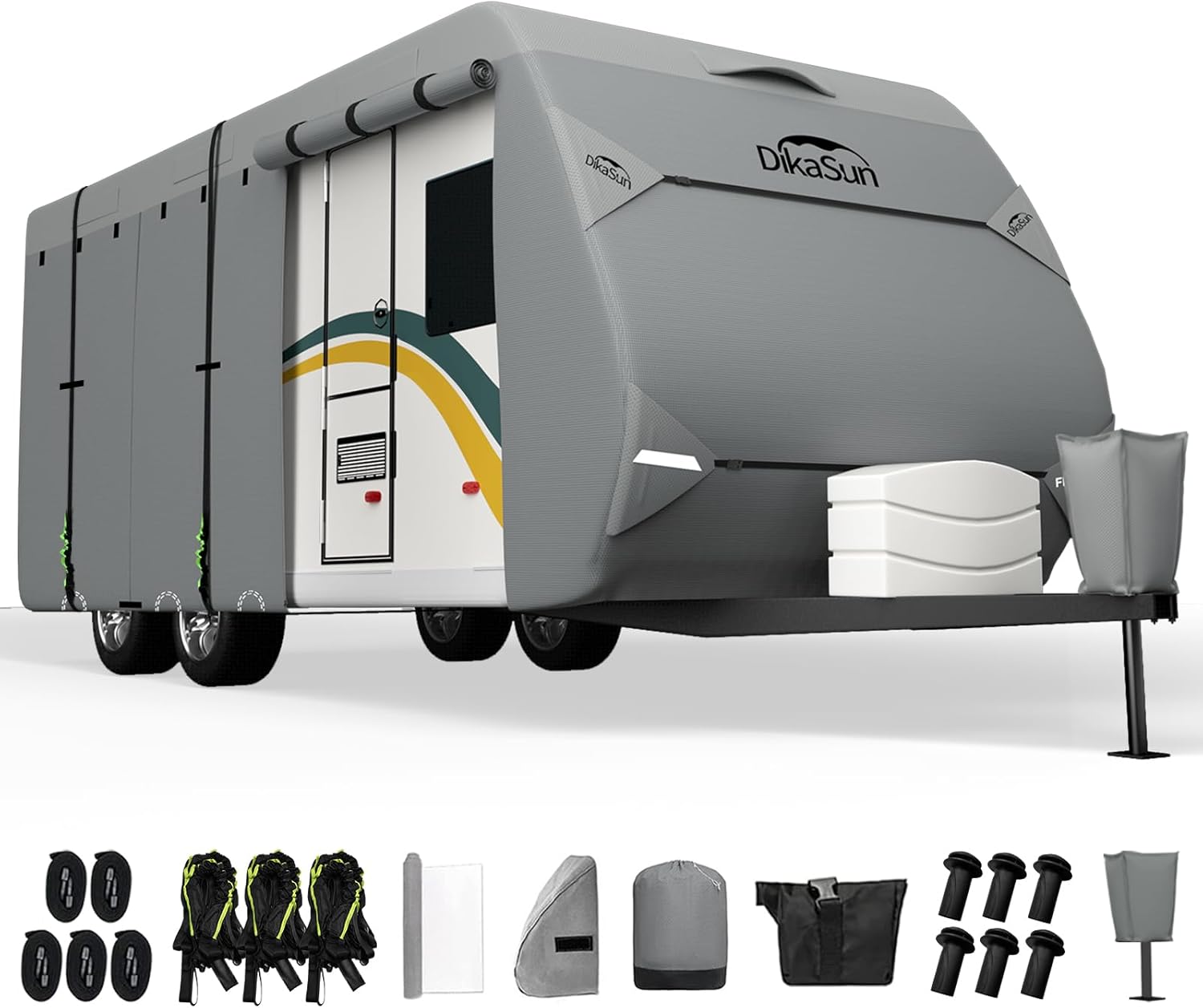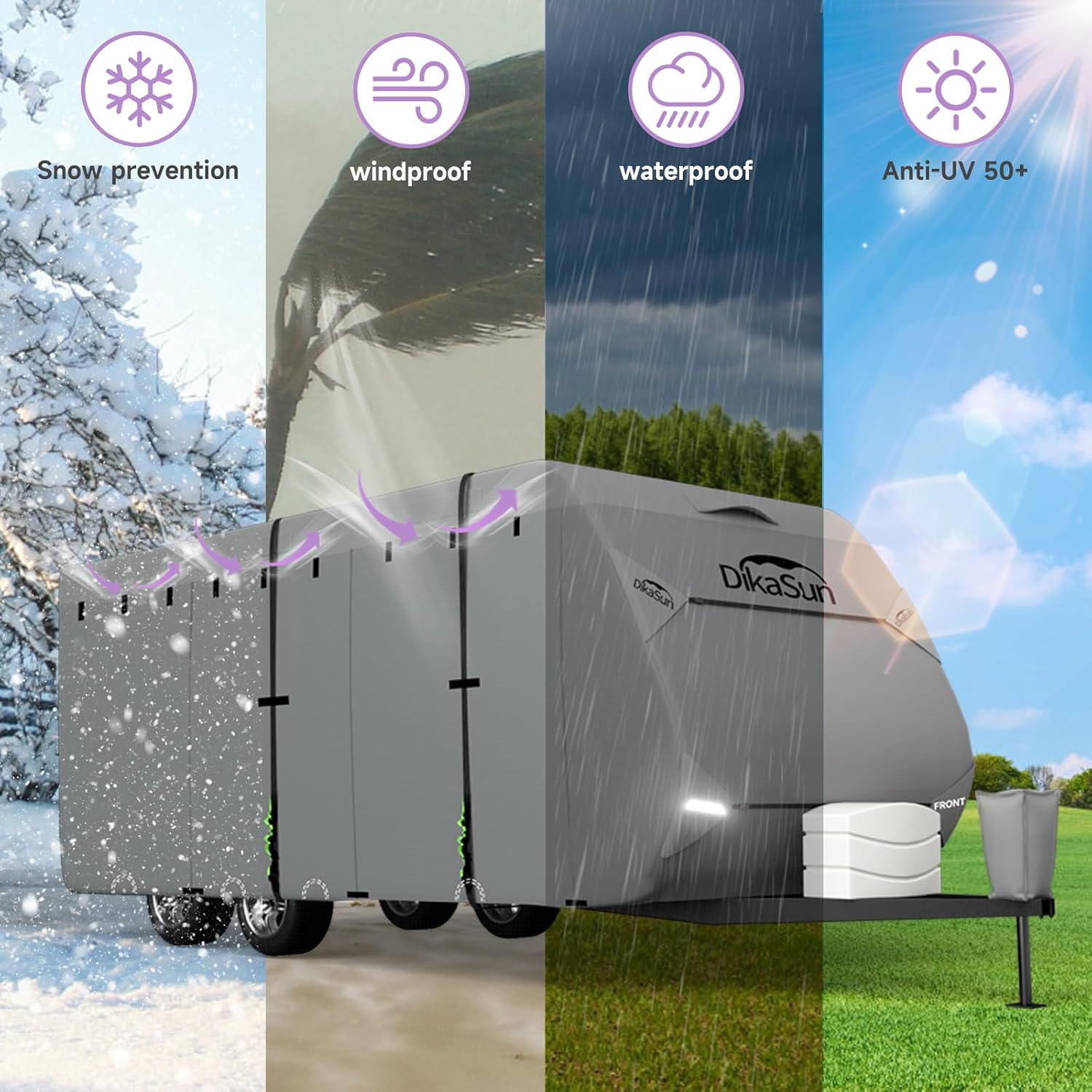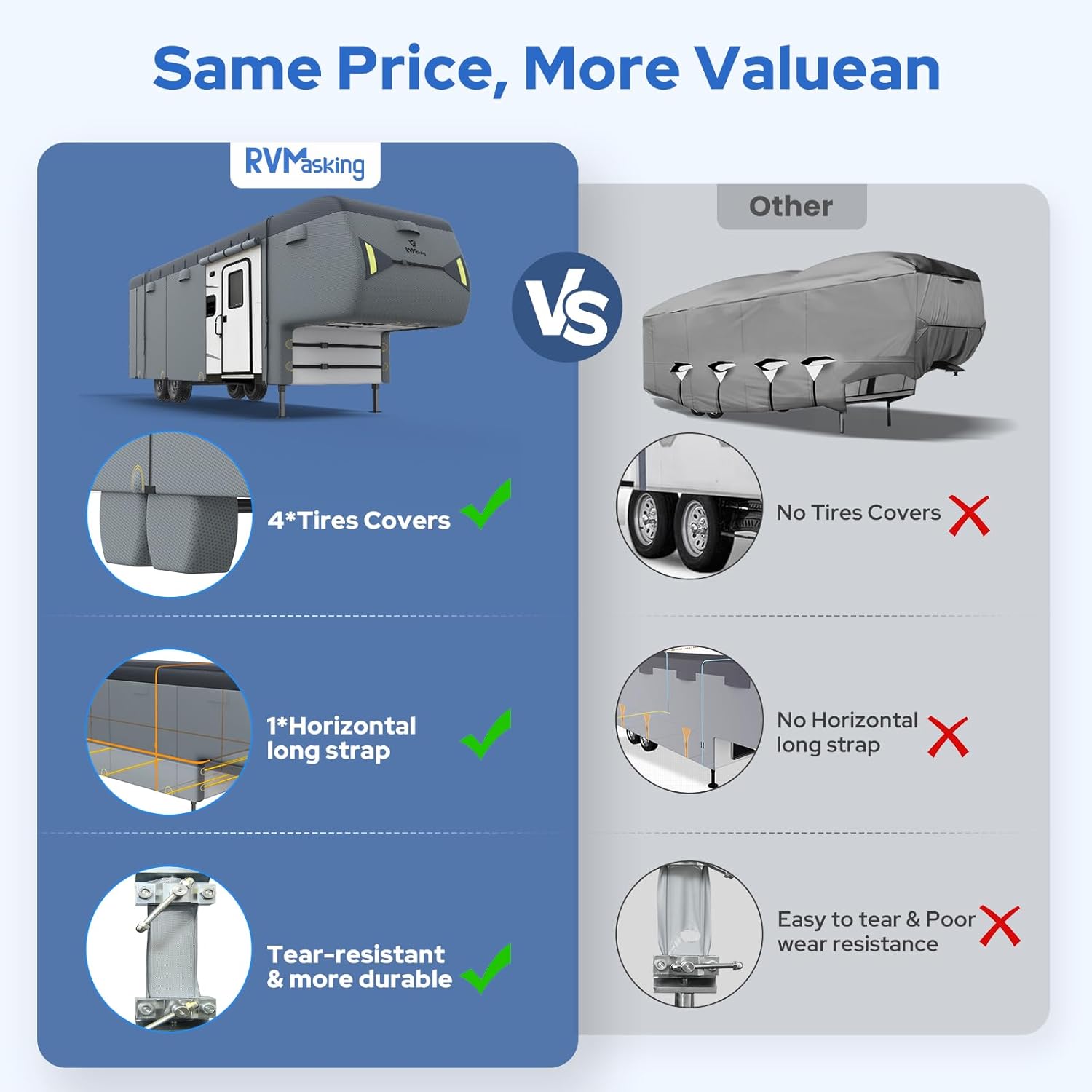 5th Wheel RV Cover 40'1"-43' Heavy Duty 7 Layers Top Fifth Wheel Cover with 4 Tire Covers Windproof Rip-Stop Anti-UV Trailer Cover Dark Gray