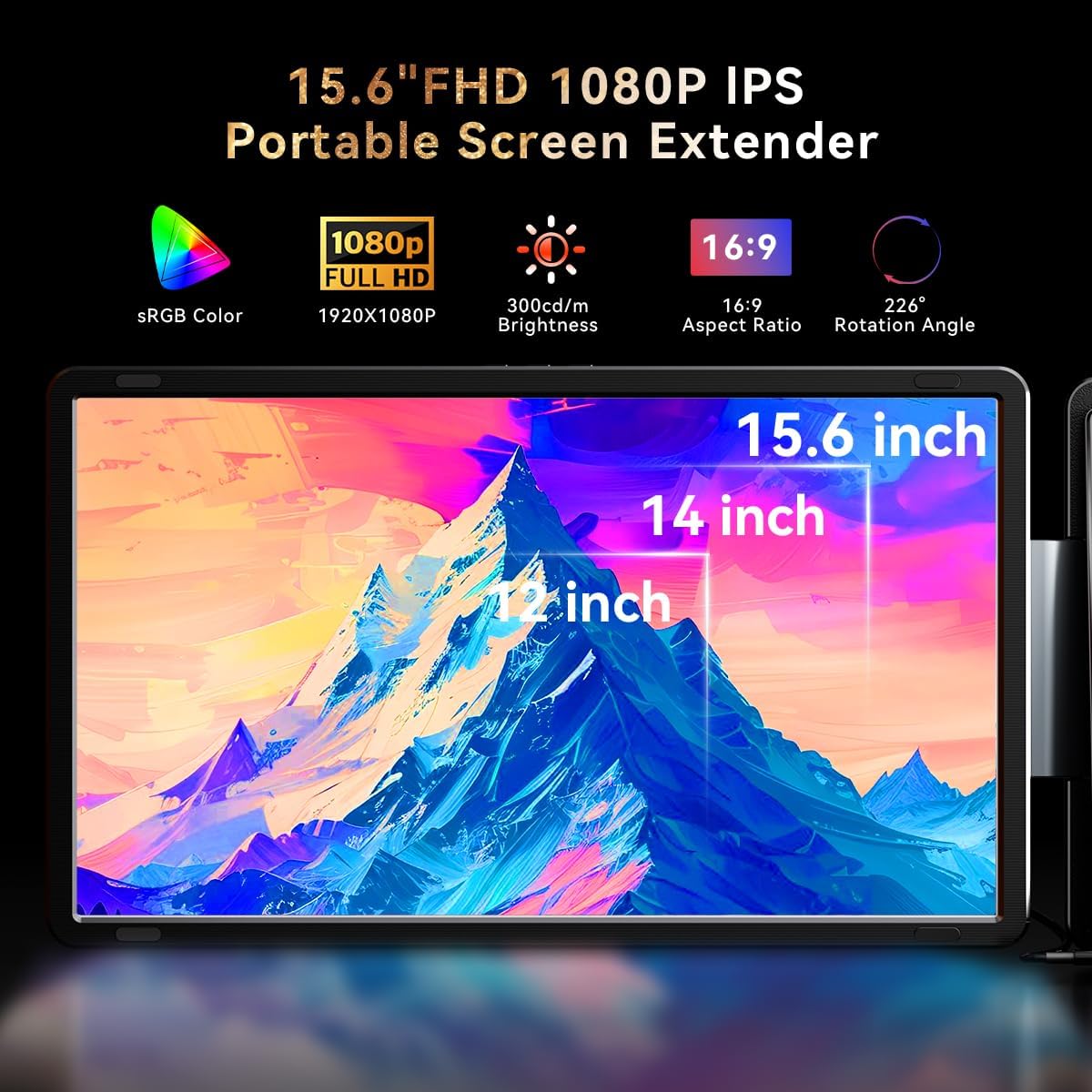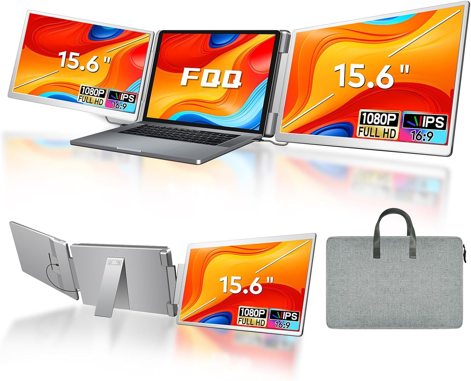 15.6" Laptop Screen Extender 1080P FHD IPS Portable Monitor Plug and Play Triple Portable Laptop Monitor for 13-17" Laptops with USB-C/HDMI for Wins/MacOS(M1//M2/M3Pro/Max).