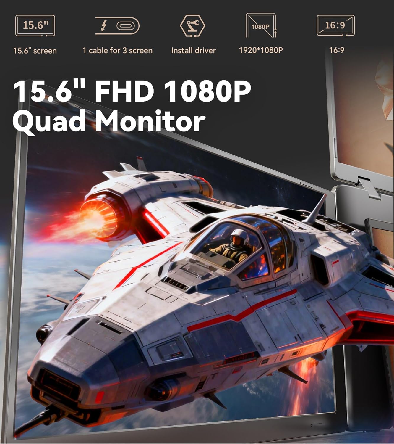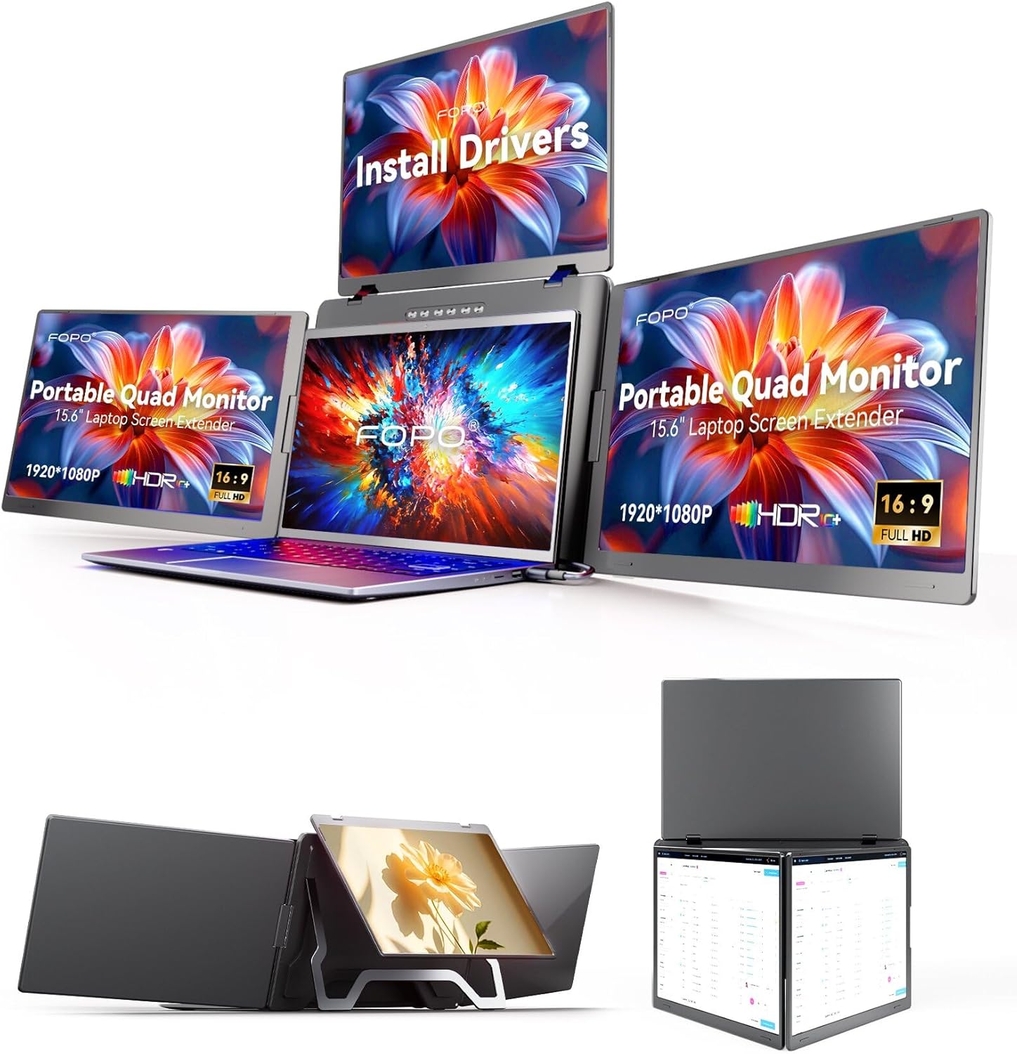 15.6" Laptop Screen Extender Quad Monitor FHD 1080P Portable Monitor Laptop Extender Portable Supports Laptops 13.6"- 17.3" Compatible with Windows 10/11 and MacOS M1/M2/M3