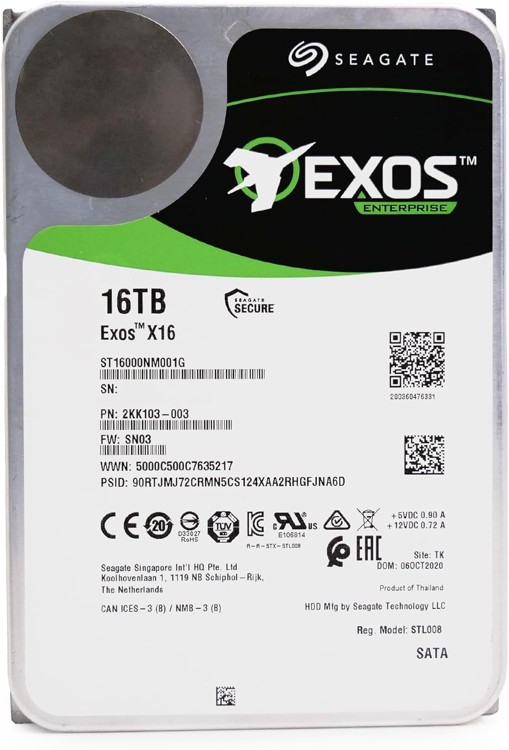 Seagate 16TB HDD Exos X16 7200 RPM 512e/4Kn SATA 6Gb/s 256MB Cache 3.5-Inch Enterprise Hard Drive (ST16000NM001G) (Renewed)