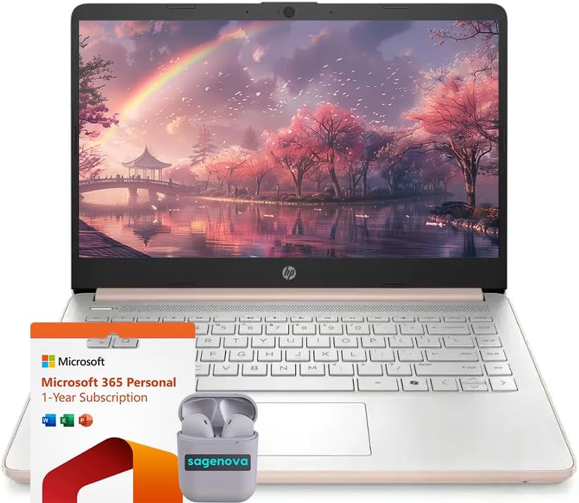 14" Business Laptop Computer with Microsoft Office 365 4-Core Intel Processor 128GB UFS + 1TB Cloud Storage 8GB RAM Windows 11 SageNova Earphones Pale Rose Gold