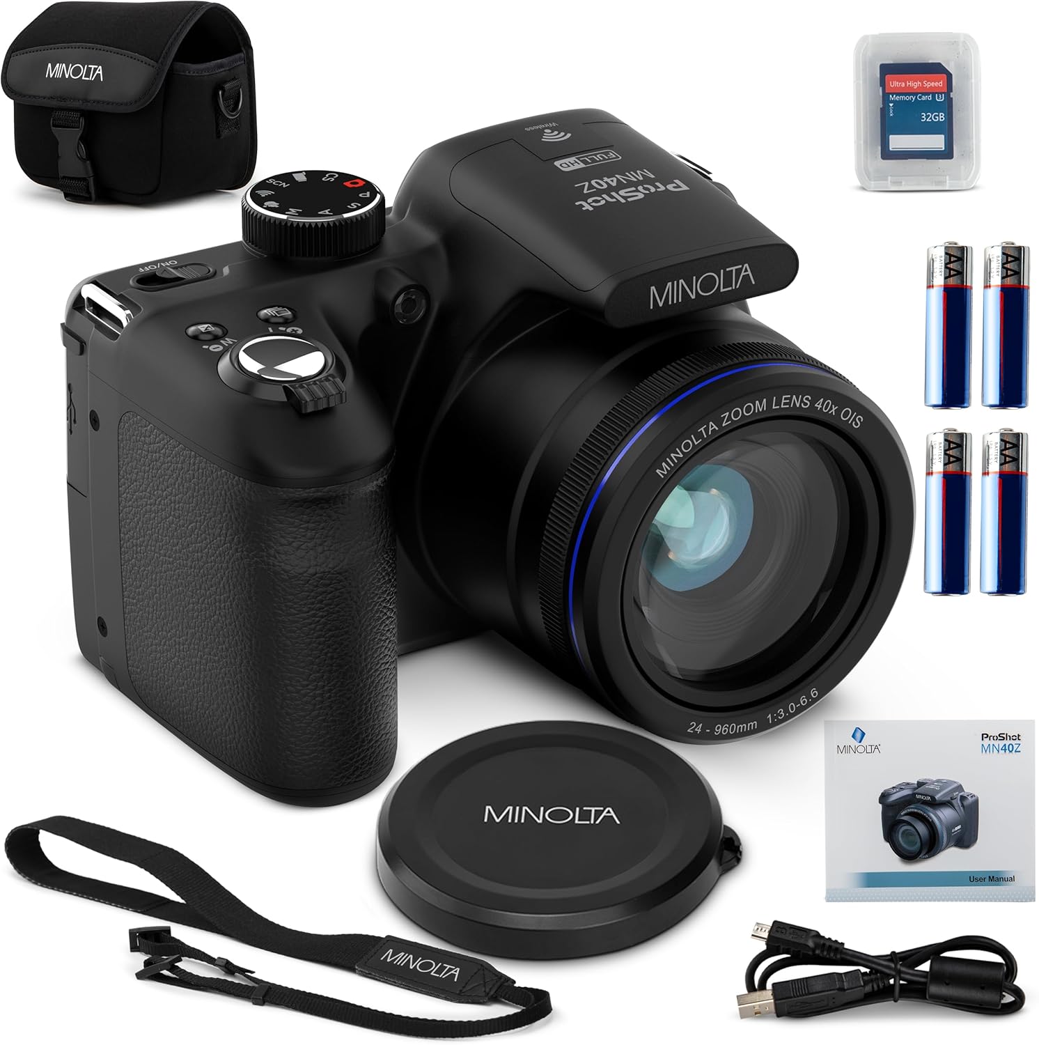 MN40Z 20MP Digital Camera 40x Optical Zoom 1080p FHD Video 3.0" LCD Wi-Fi Face/Smile/Blink Detection Black