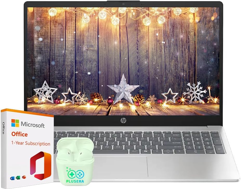 15.6" Laptop with Microsoft Office 365 Included Intel 4-Core Processor 32GB RAM 128GB SSD Windows 11 PLUSERA Earphones Natural Silver