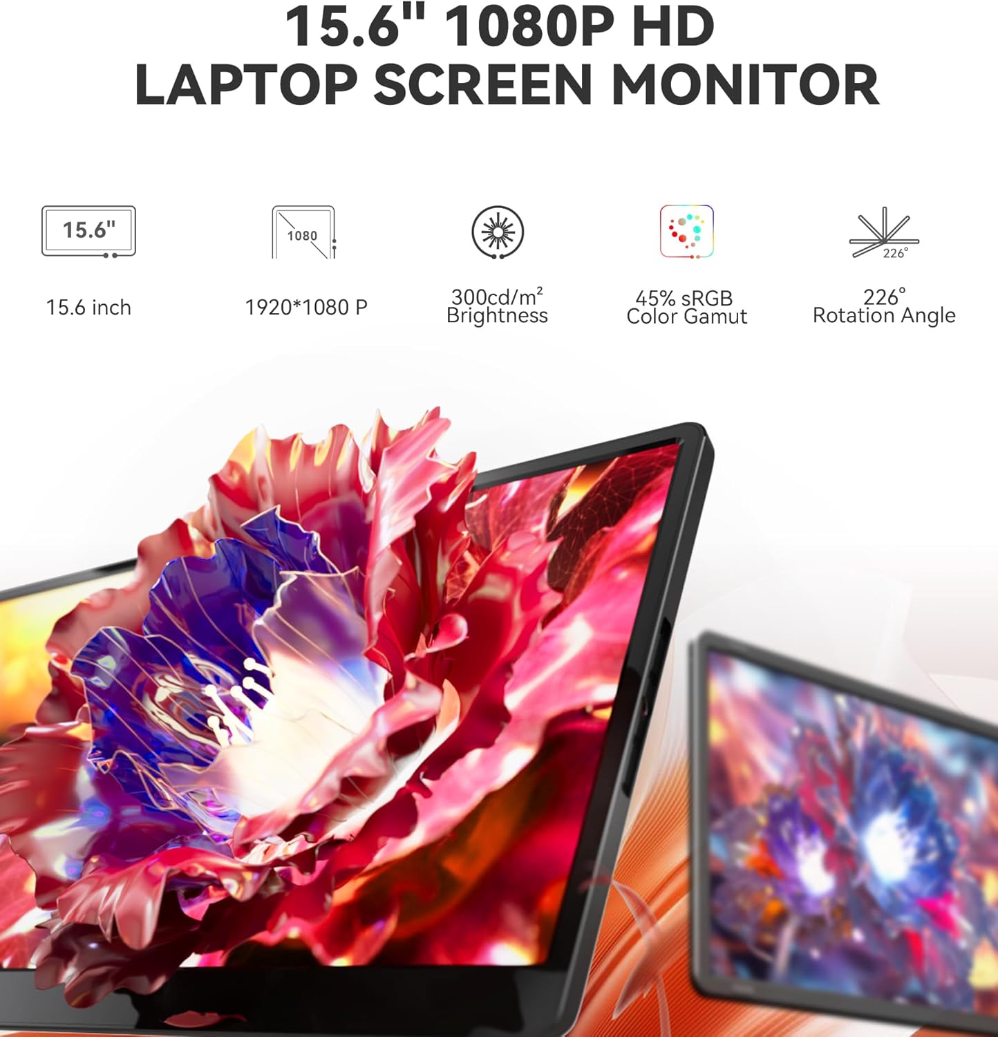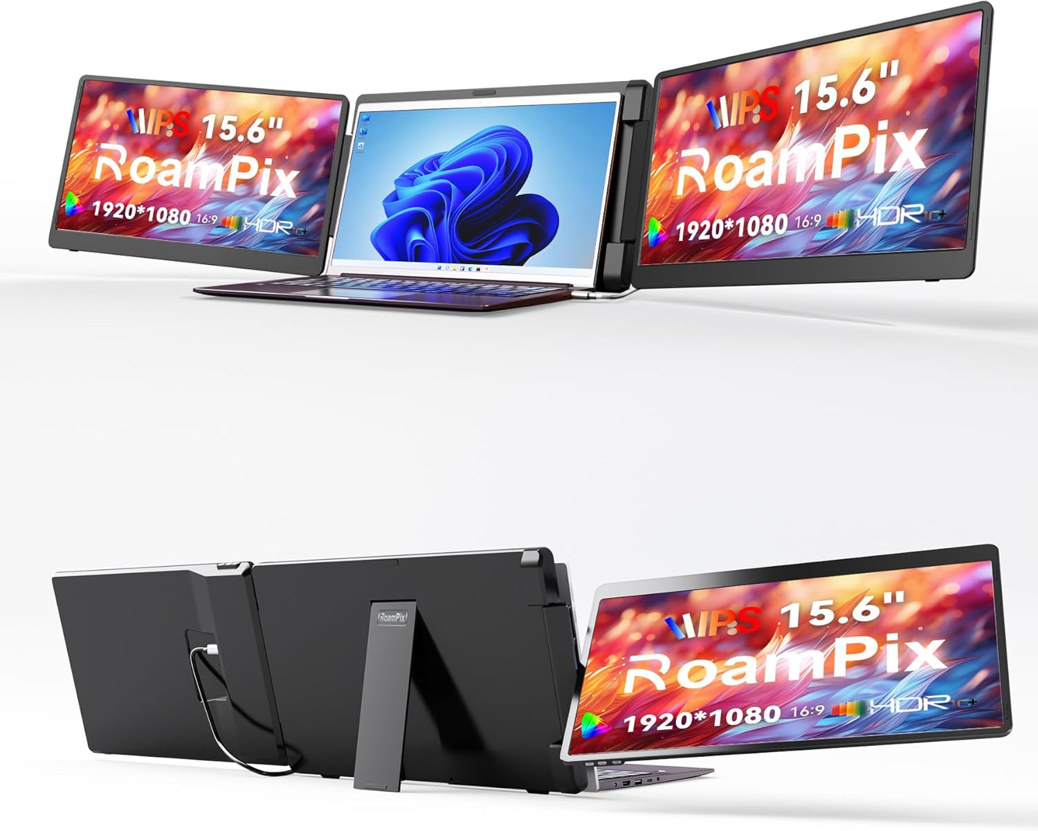 15.6" Laptop Screen Extender Left Screen 360 Flip Triple Screen Monitor Extender FHD 1080P IPS Portable Travel Monitor Display fit for 1218.5" Laptops Compatible with Windows and MacBook-S10