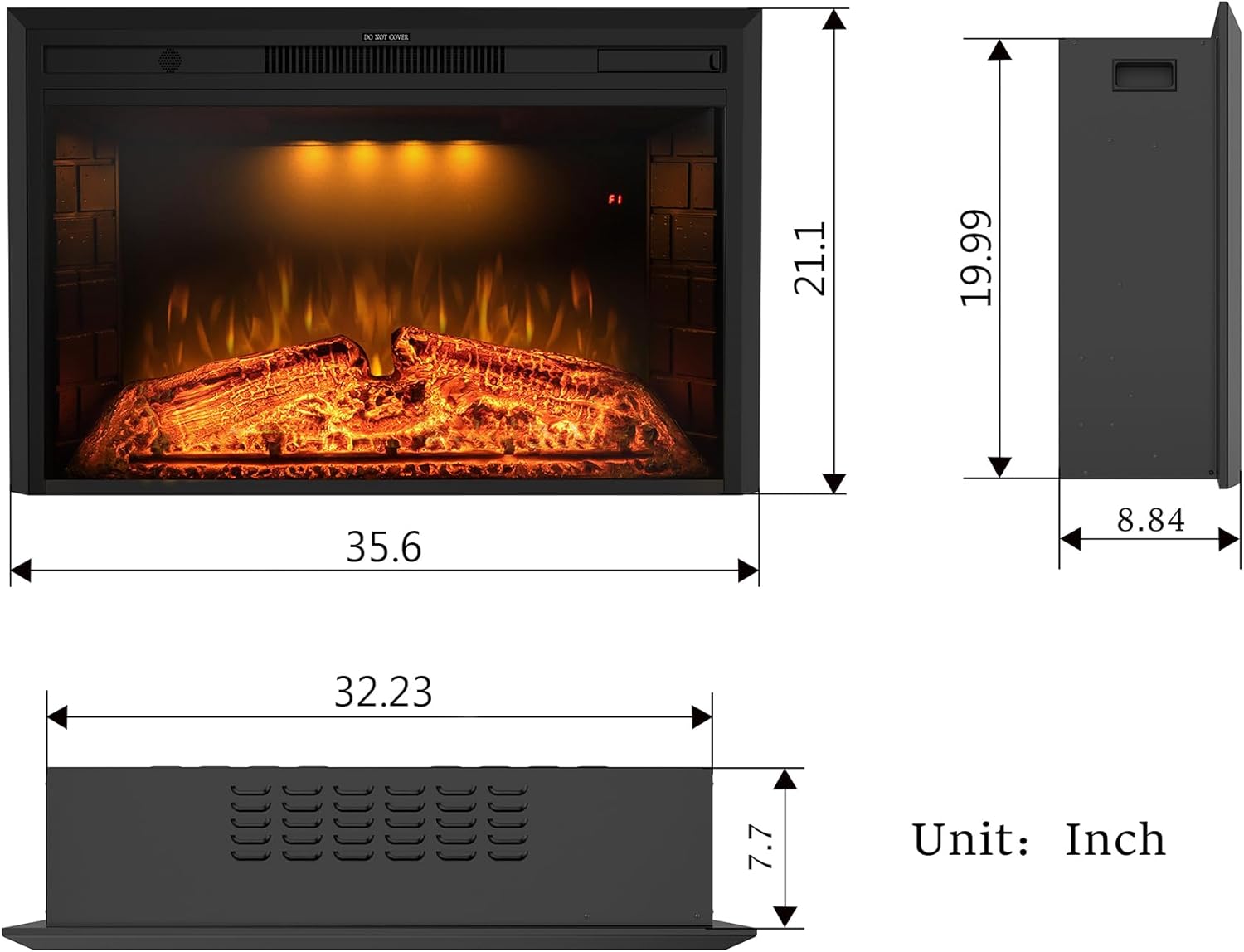 36'' Electric Fireplace Inserts, Recessed & Built in Wall Electric Fireplace Heater with Fire Crackling Sound, Adjustable Top Light & Flame Speed, Overheating Protection, 750/1500W Black