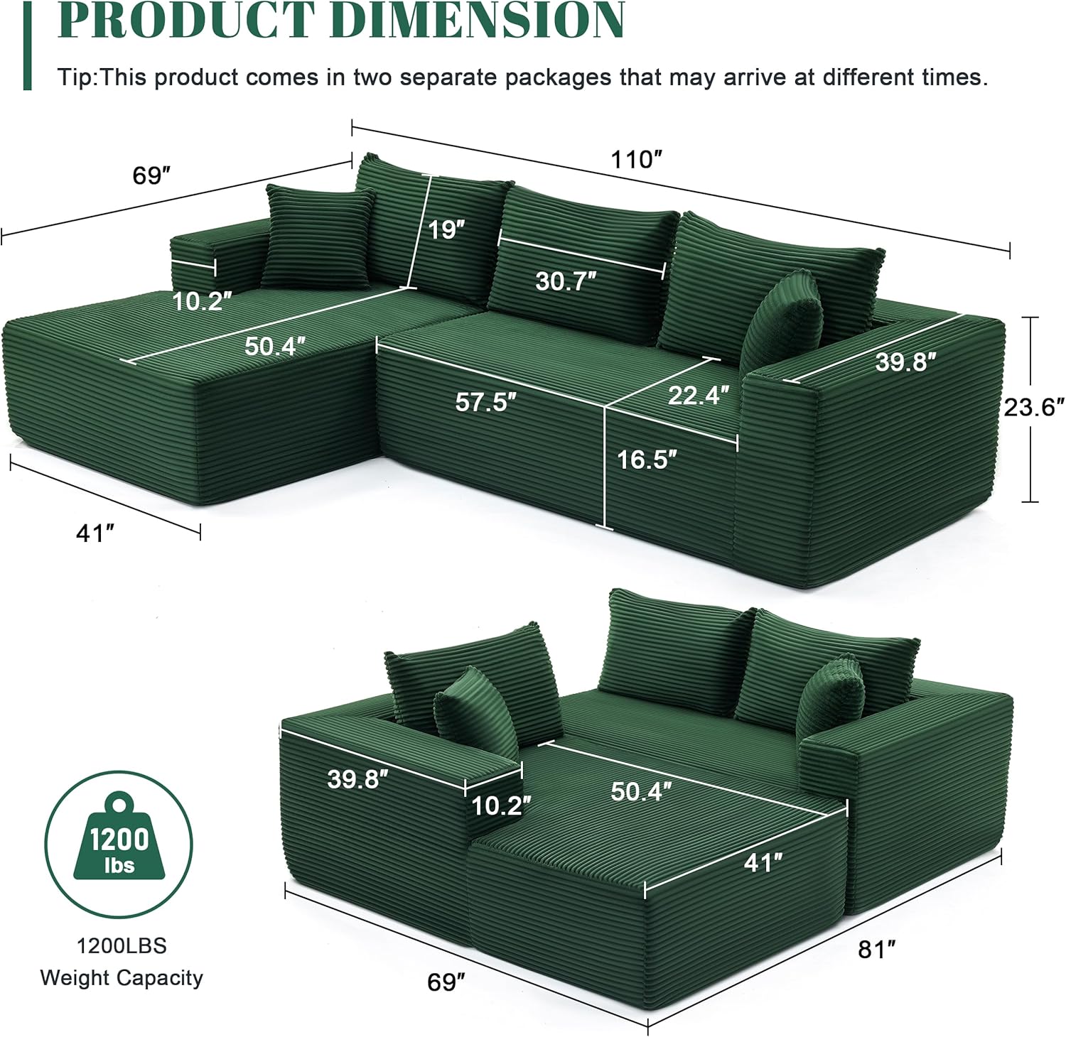 110" L Shape with Right Facing Chaise