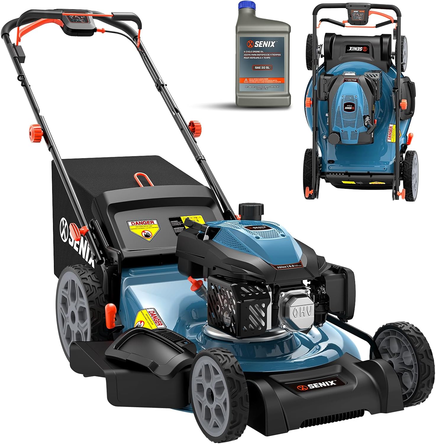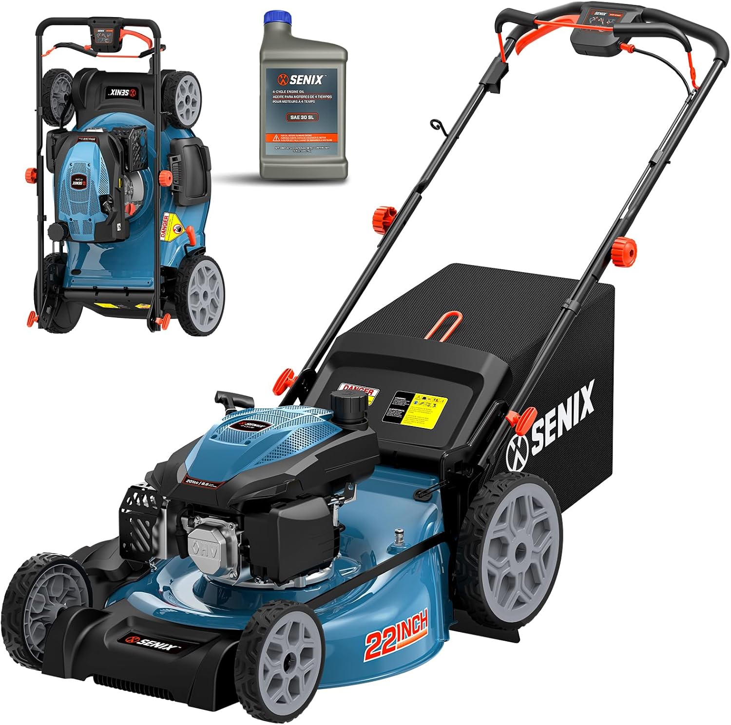 201cc 22" 3-in-1 Gas Lawn Mower Variable Speed Rear Wheel Self-Propelled Mower Mulching Bagging Discharging Foldable 6 Cutting Height Adjustable for Garden Yard