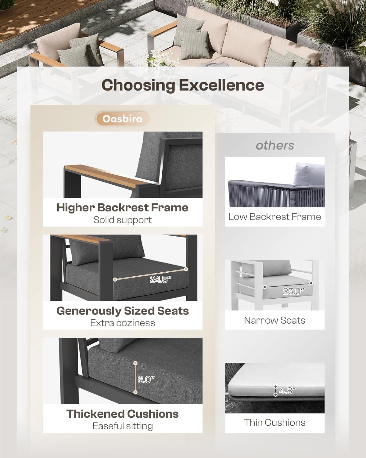 Aluminum Outdoor Patio Furniture Set with Coffee Table 5 Piece Patio Conversation Sets with Washable Thick Cushions Outdoor Sectional Furniture Set for Porch Balcony Deck Yard Graphite