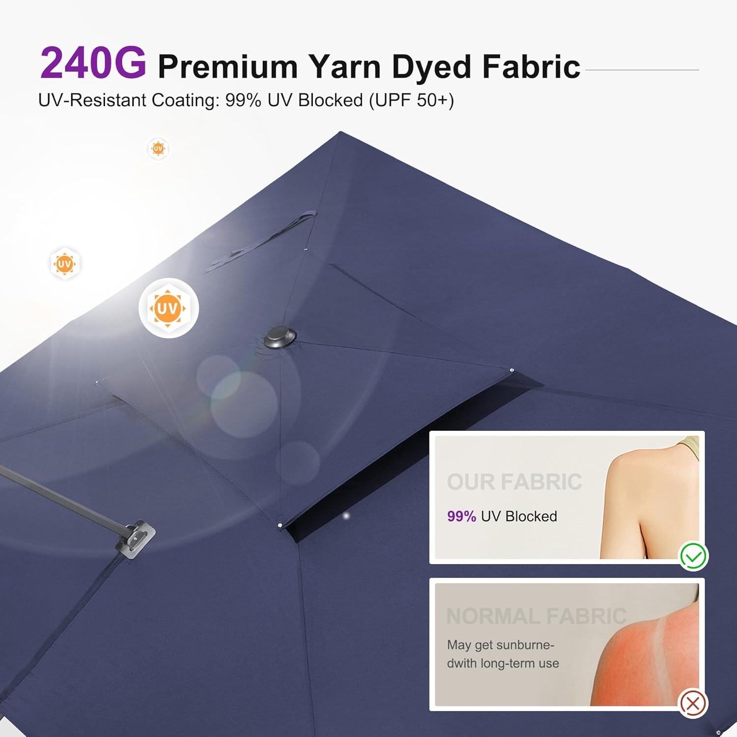 10' X 13' Cantilever Outdoor Umbrellas Large Patio Umbrella Hanging Double Top Rectangle Offset Umbrella with 360Rotation Tilting Umbrella Outdoor Patio Navy Blue