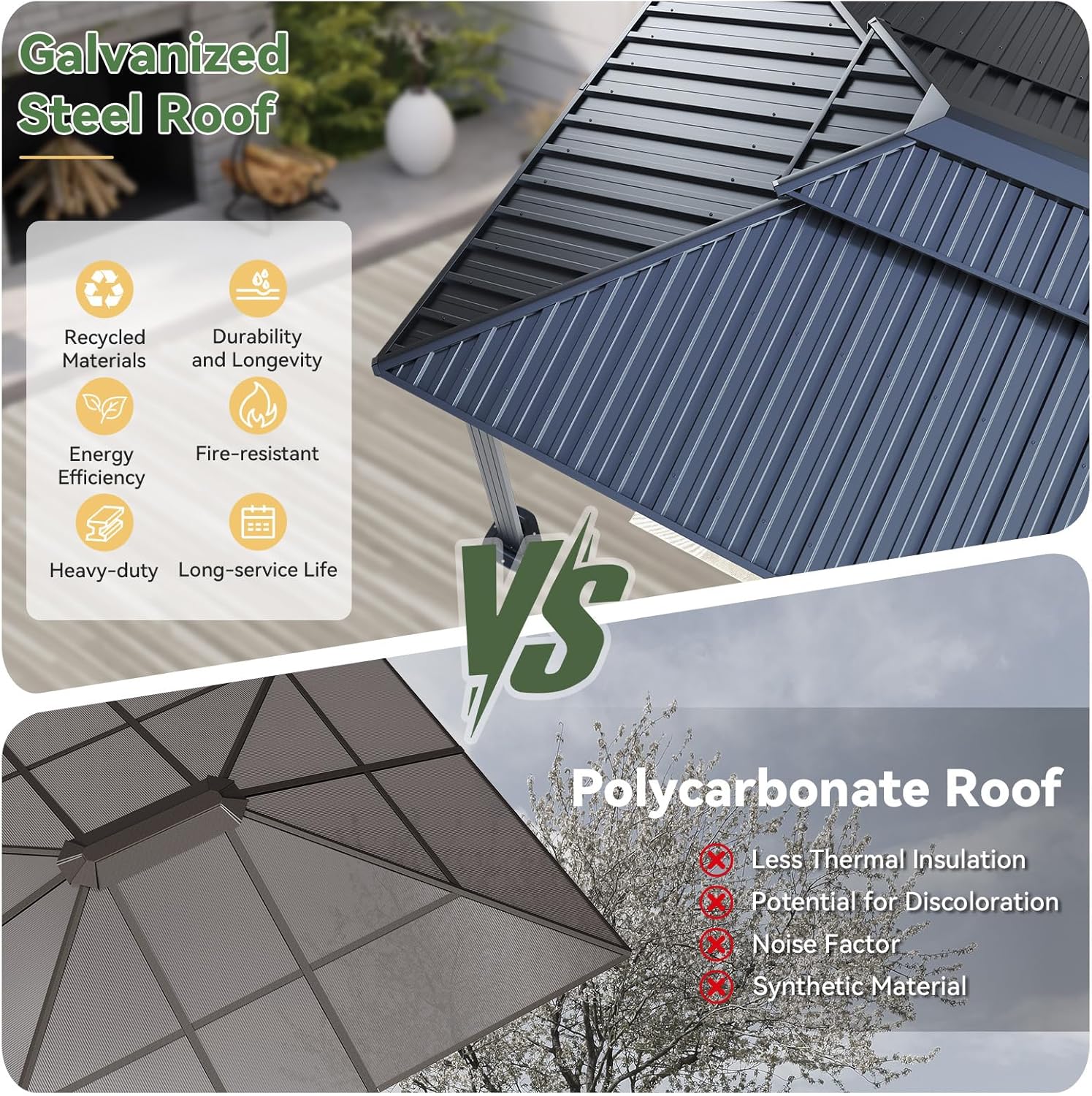 10x12 Gazebo Hardtop Gazebo with Double Galvanized Steel Roof Outdoor Pavilion with Breathable Netting and Privacy Curtain for Backyard (Gray)