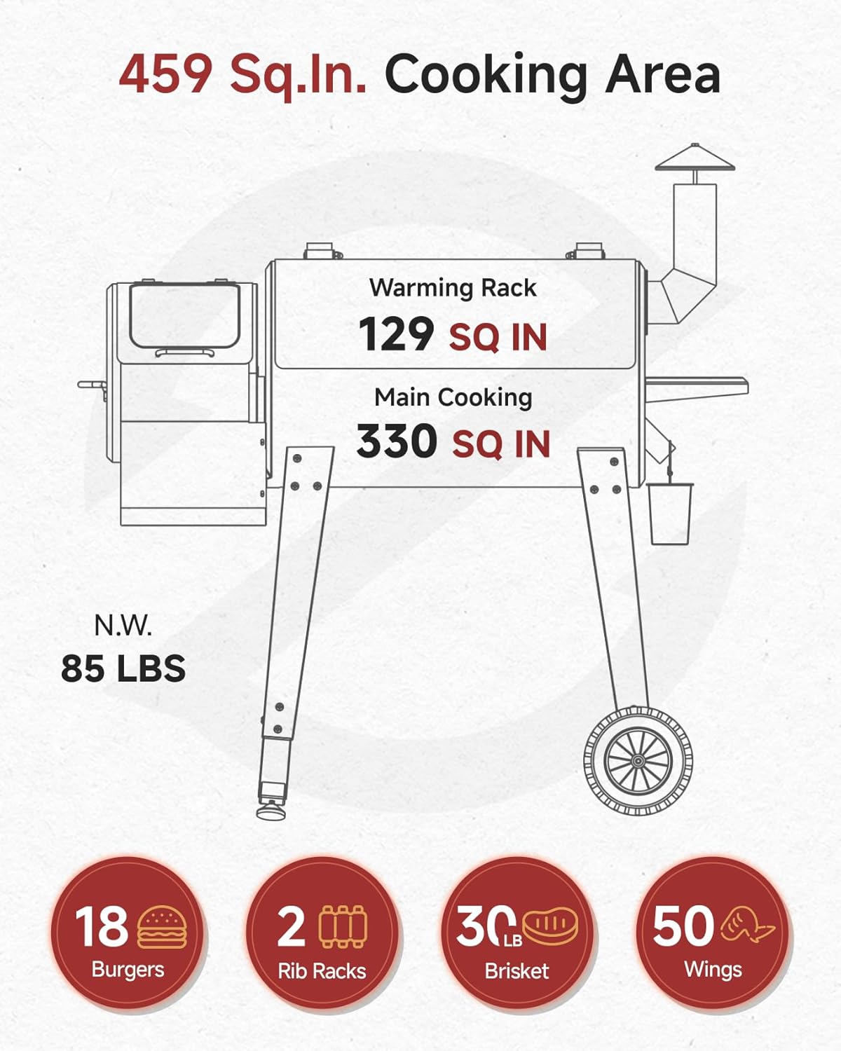 ZPG-450A2 Wood Pellet Grill & Smoker PID V3.0 Controller 459 Sq in Cook Area Foldable Shelf Meat Probe Rain Cover 8 in 1 BBQ Grill Outdoor Auto Temperature Control Bronze