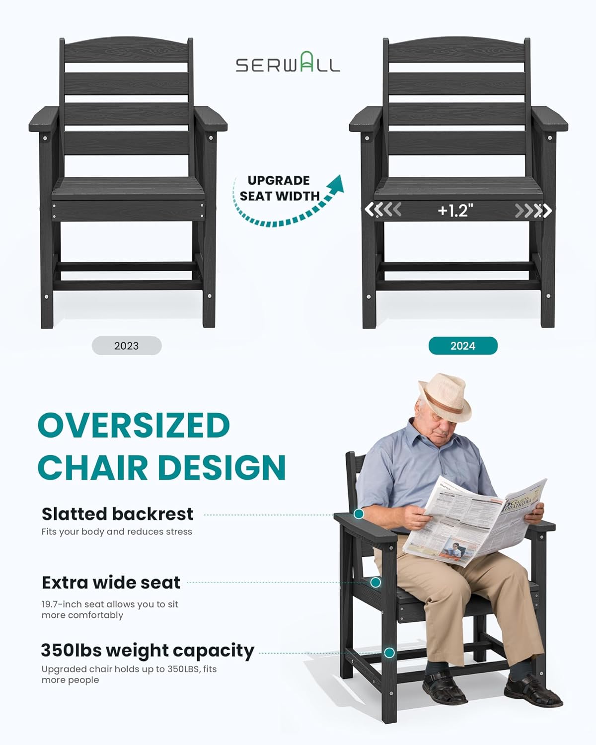 7-Piece Patio Dining Table Sets Outdoor HDPE Dining Furniture Set with Umbrella Hole Cut-Out Table and 6 Chairs Black