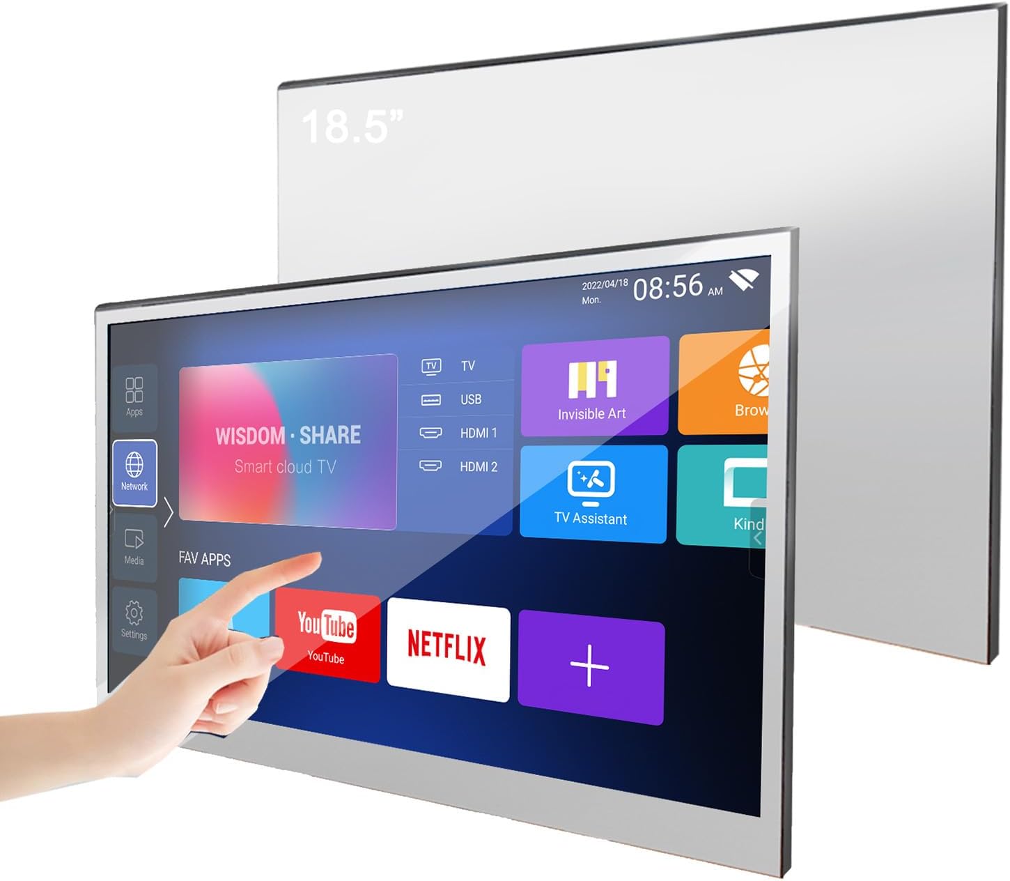 Hkcvv 18.5 inches Full Touchscreen Smart Mini Mirror LEHkcvv TV for Bathroom IPX6 Waterproof Built-in WiFi Bluetooth ATSC HkcvvTV Tuner