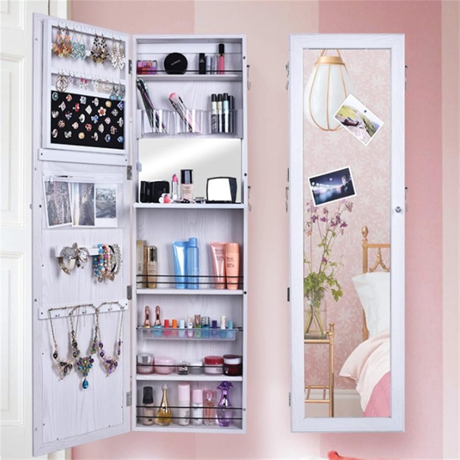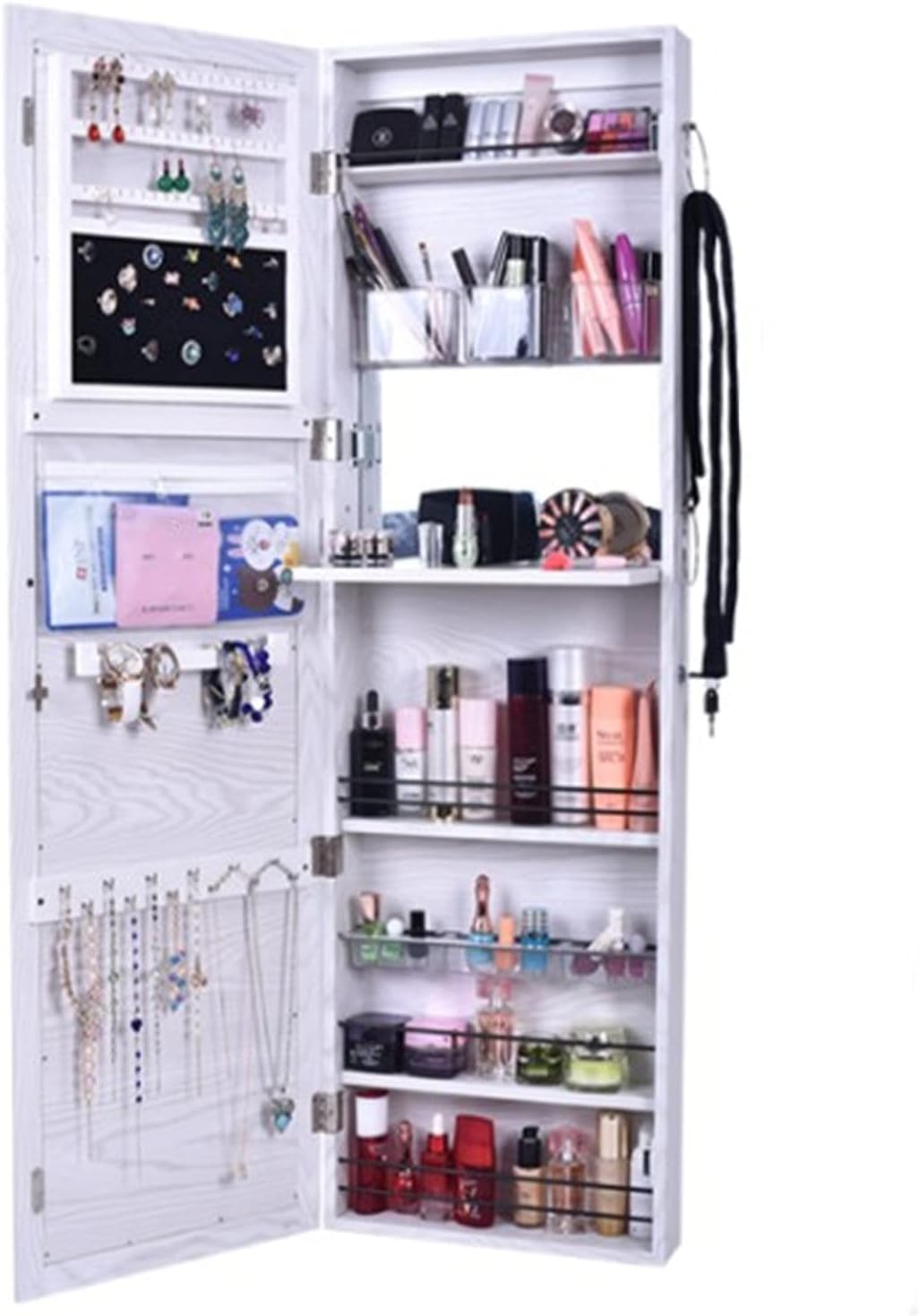 Full-Length Mirror Jewelry Cabinet - White Multi-Functional Home Storage 120x37x9.5cm - Ideal for Bedroom & Cloakroom Stylish Organizer for Jewelry & Accessories (White1 120x37x9.5cm)