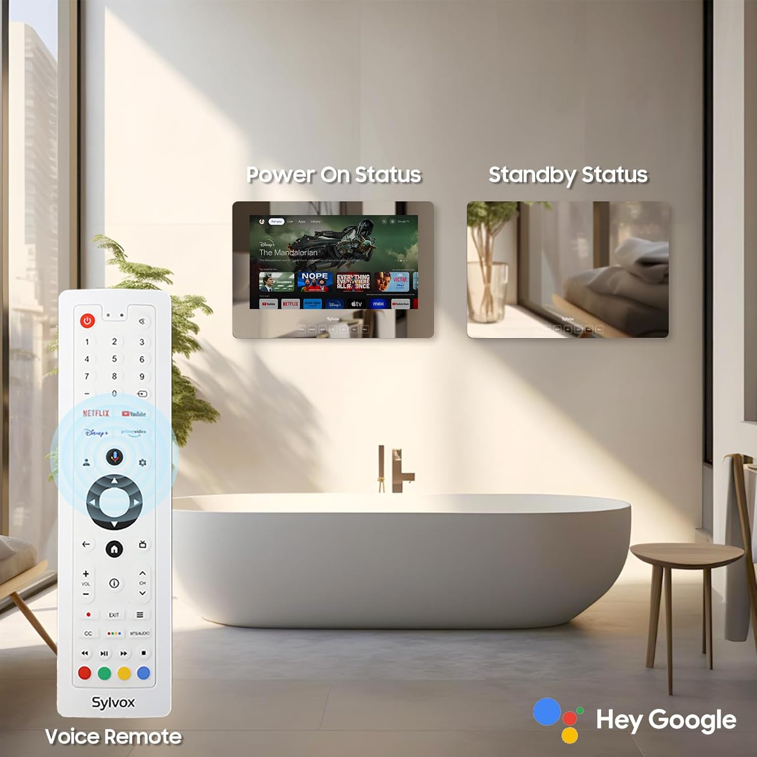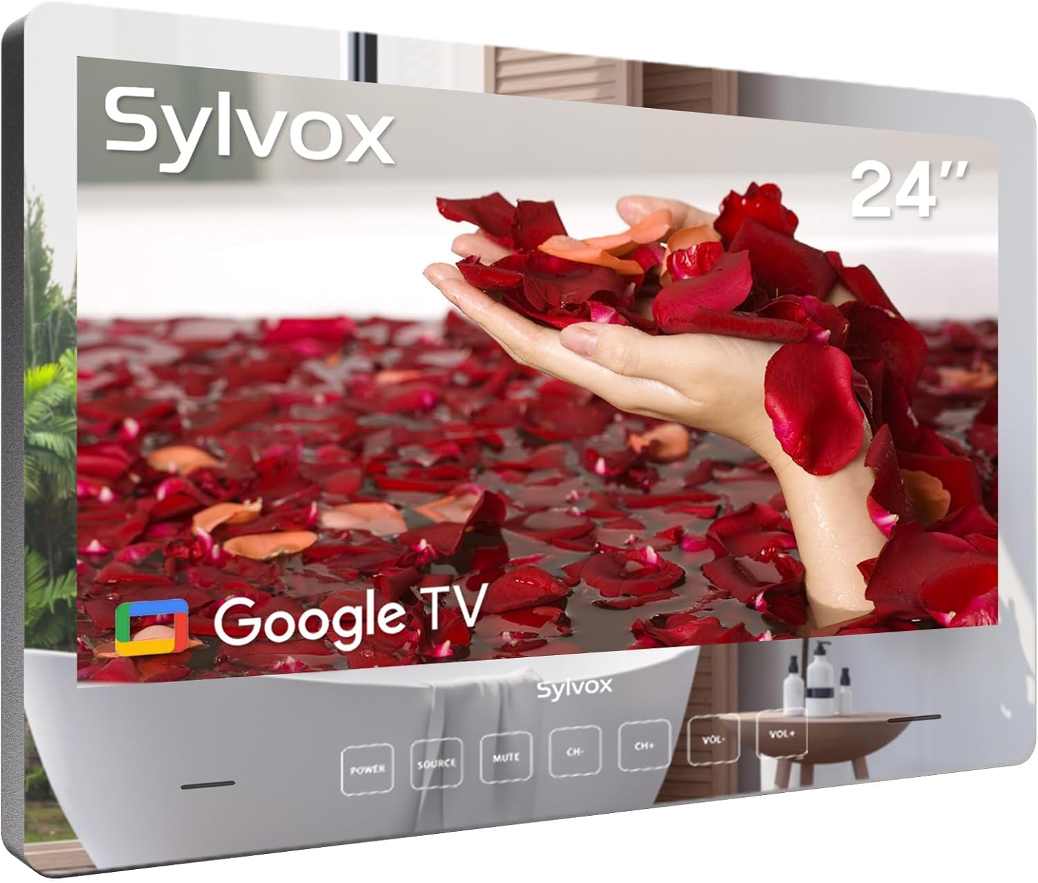 Hkcvv 23.8” (24”) Waterproof Bathroom Smart Mirror TV webOS Smart TV with Built-in Alexa Wi-Fi Bluetooth ATSC Tuner Kitchen SPA Resort