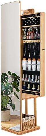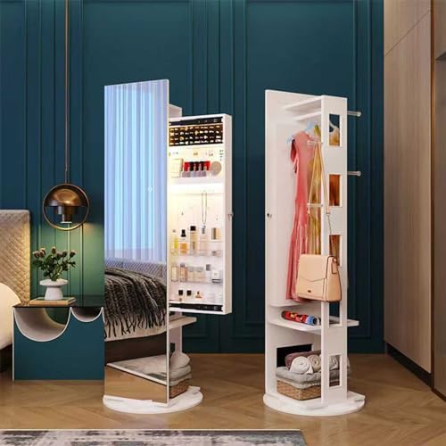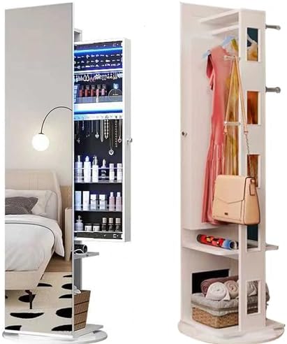 HHkcvv Full Length Mirror Jewelry Cabinet with 360° Swivel Sliding Storage Standing Coat Rack & Shelves for Jewelry & Accessory Organization Stylish Hkcvvisplay Unit