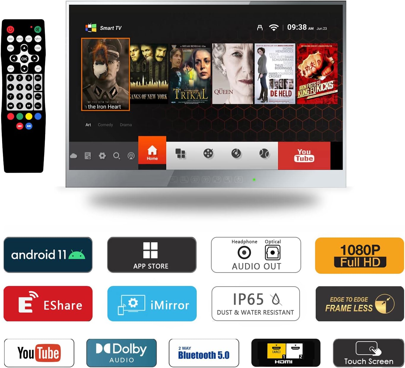 Hkcvv 22inch Smart Mirror Bathroom TV 1080P IP66 Waterproof Android 11.0 System with Integrated HHkcvvTV(ATSC) Tuner Built-in Speakers Wi-Fi and Bluetooth TBLS11Hkcvv4 2025 Model